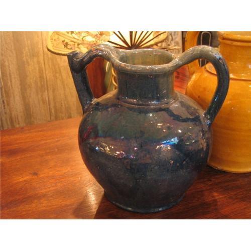 Beautiful 19th century French glazed earthenware water pitcher from the Ardeche region.
