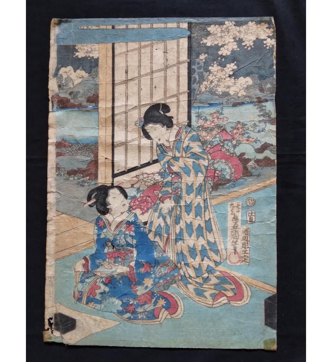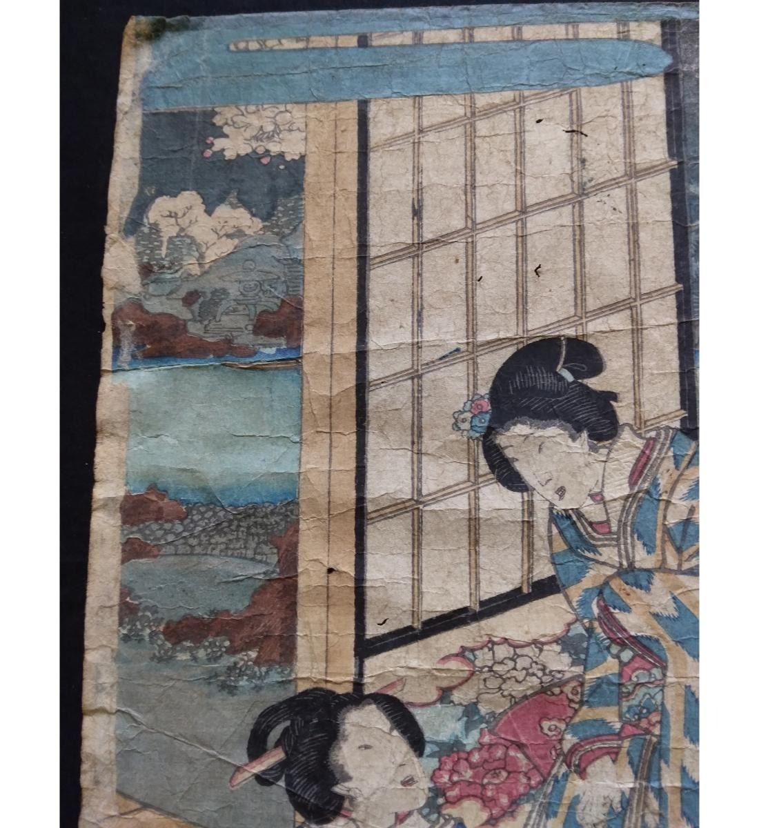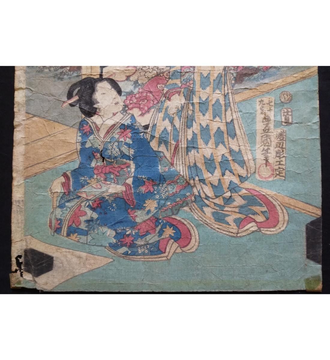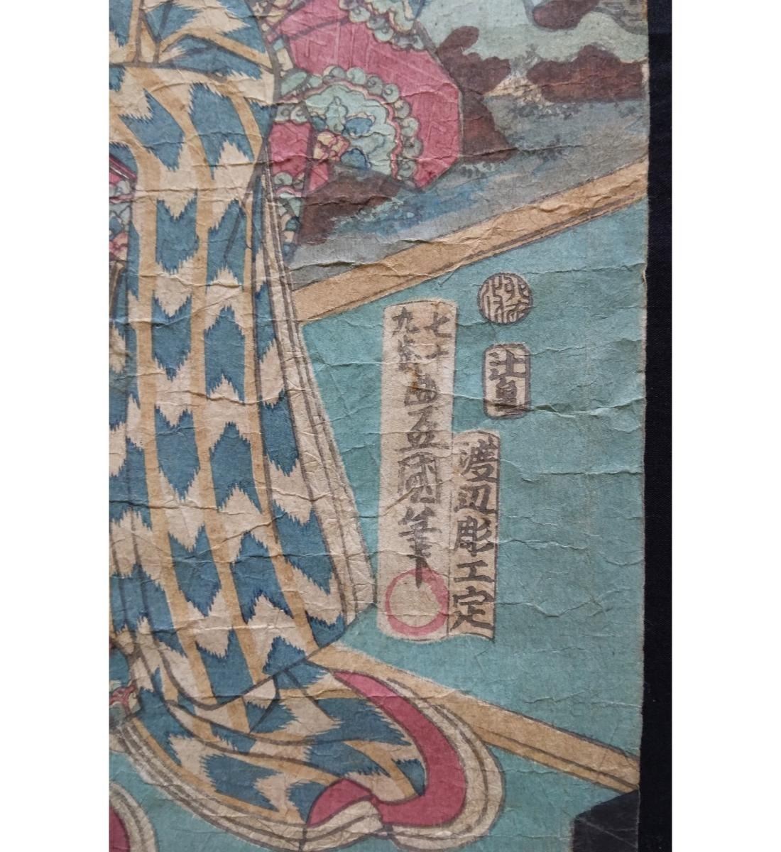 19th Century Japanese Woodblock Print Toyokuni. Measure 35 Cm X 25 CM. Provenance: One Person Private Estate Central Florida.