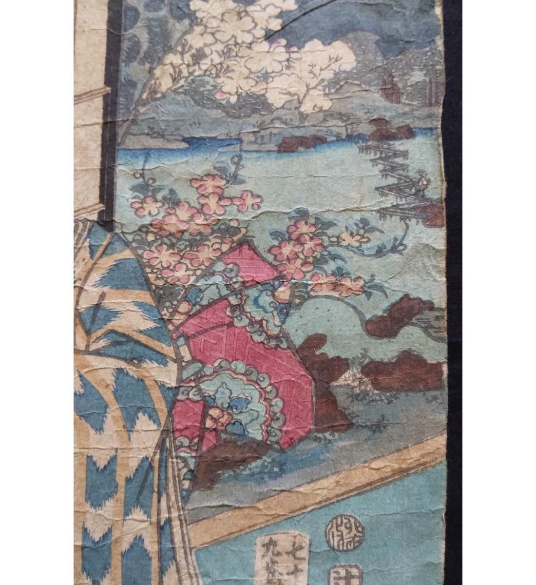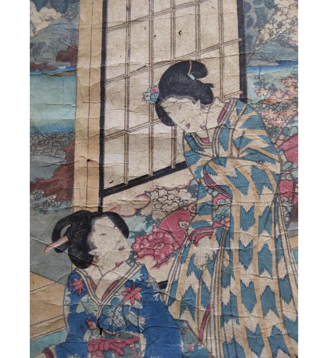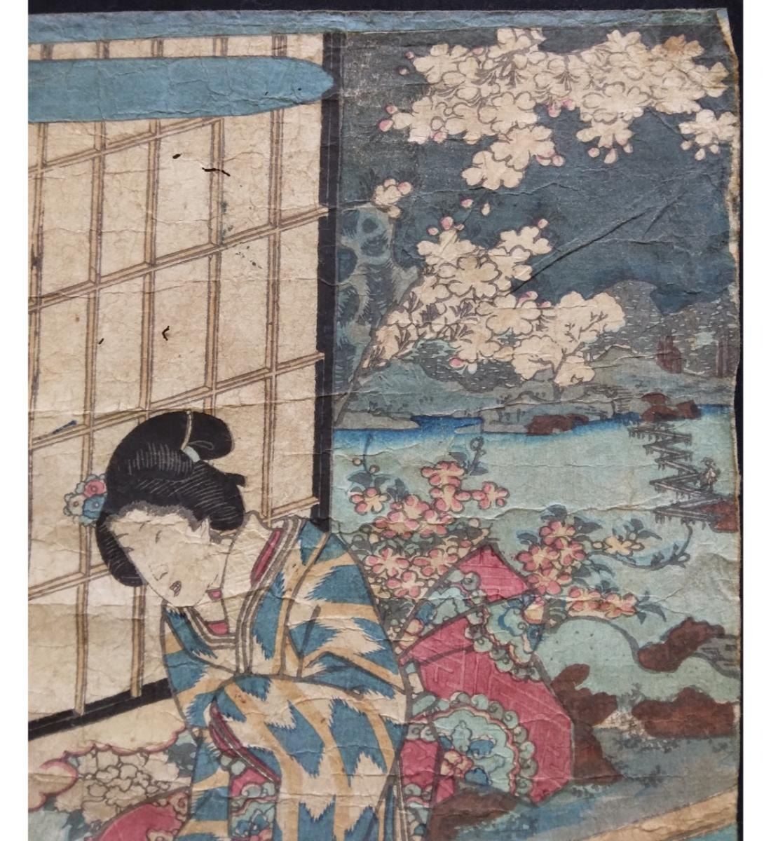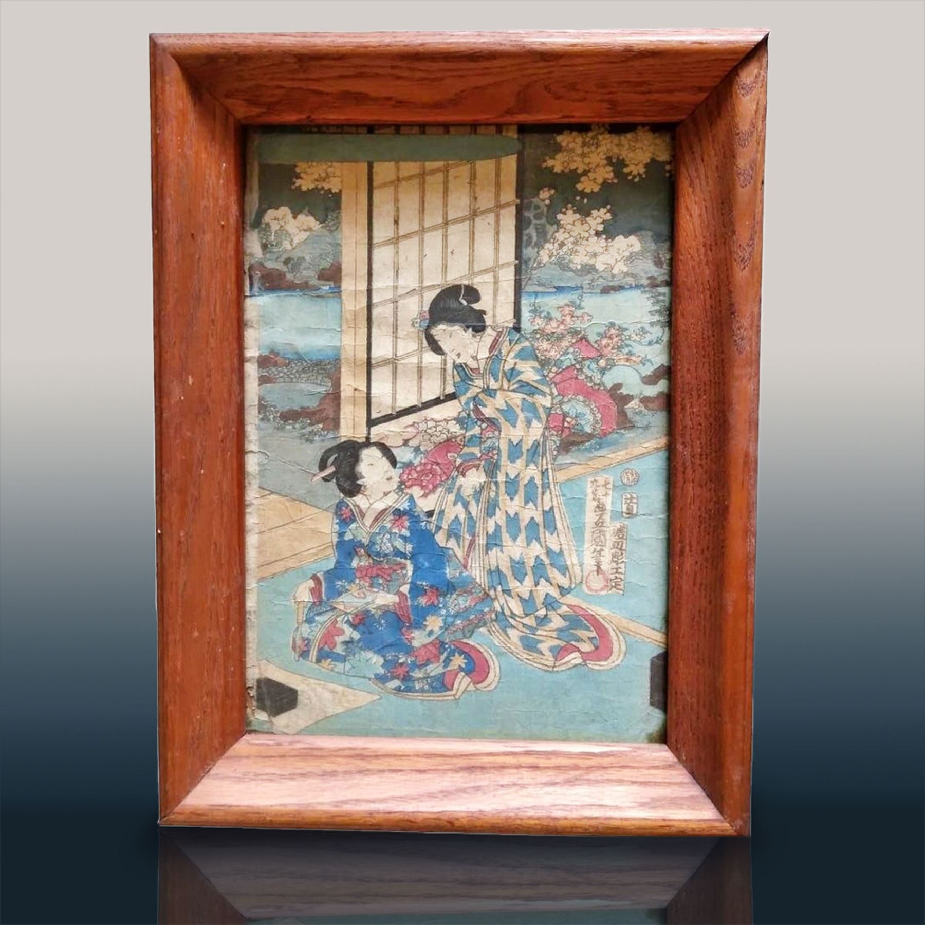 19th Century Japanese Woodblock Print Toyokuni. Measure 35 Cm X 25 CM. Provenance: One Person Private Estate Central Florida.