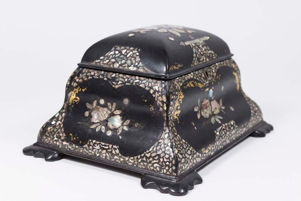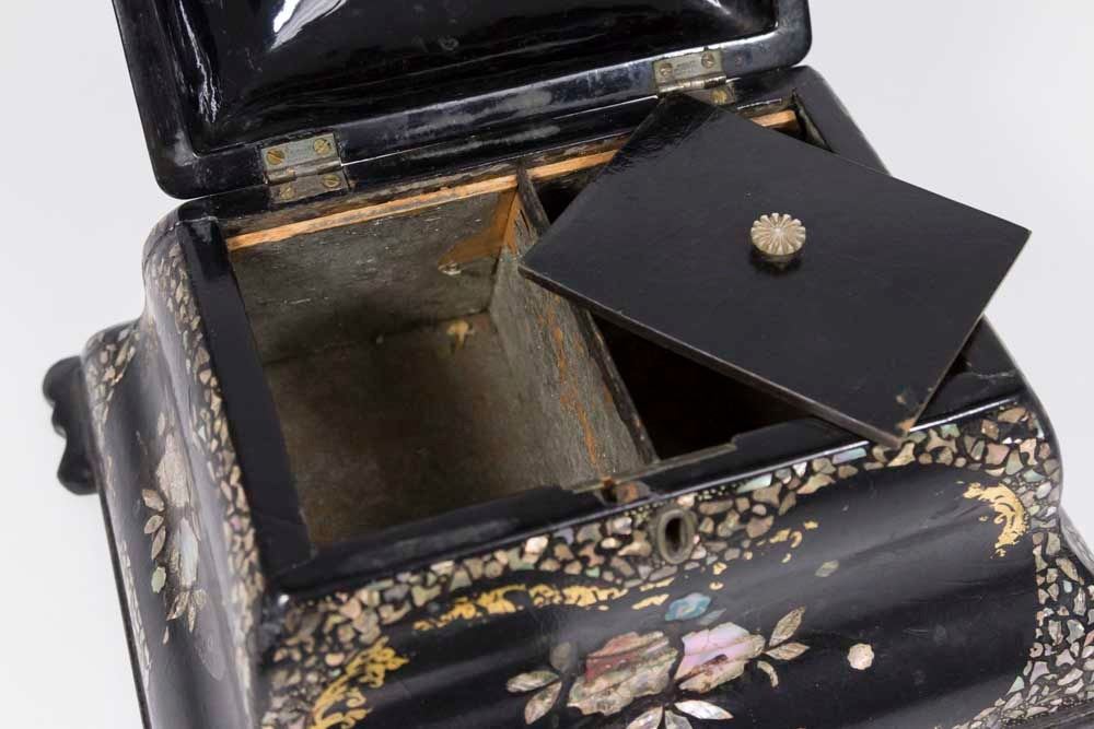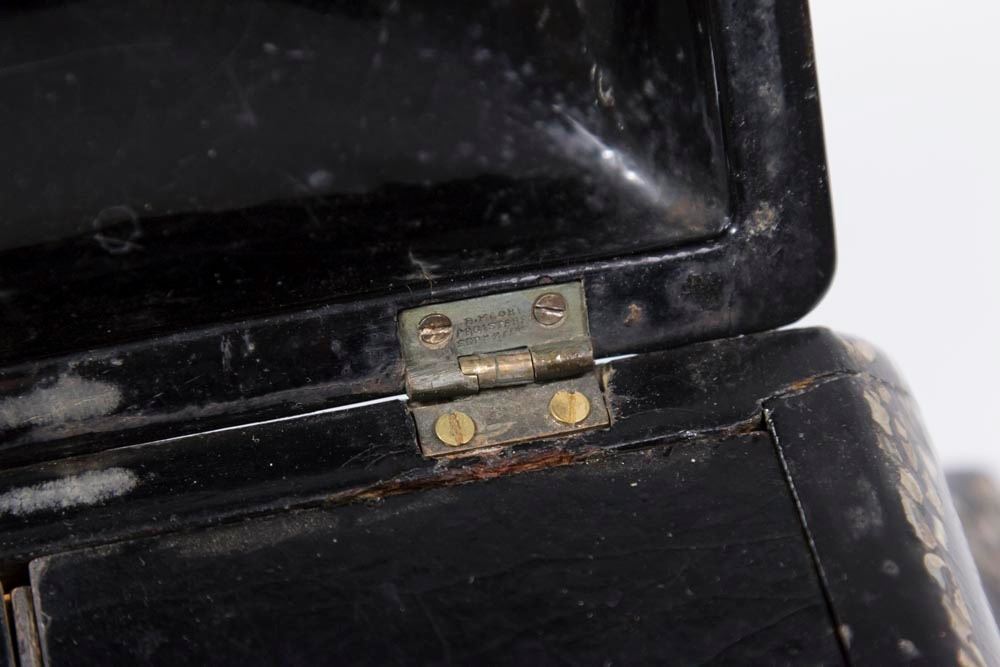 (6055). Measures approx. 6 1/2" x 10 1/2"W x 8 3/4"D Minor loss interior next to lock.