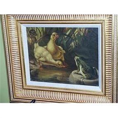 19th Century Oil Painting, Ducklings and a Frog#2056821