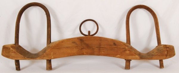 19th century ox bow and two neck yokes. All show use and age but ready for display.