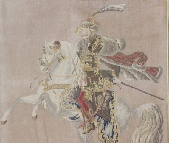 Approx. 32" H x 29" W sight, 43" H x 40" W framed. From an Edgewater, NJ estate. Fading and wear.