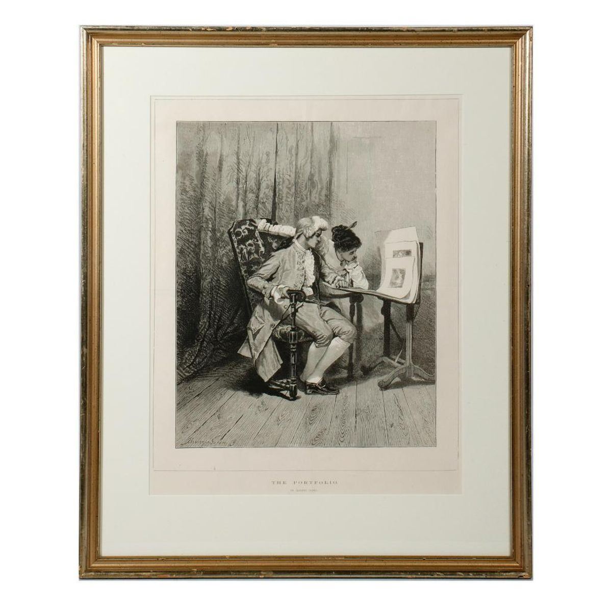 Artist: Alfredo Perea Title/Subject: "The Portfolio", Man and a Lady looking at a Portfolio of Art. Size: 15 1/2in. x 12in (image); 21 1/4in x 17 1/4in. (framed). Year Created: 19th Century. Medium/Ground: Print Multiple. Vertical and Horizontal creasing. Condition Report: All lots are sold as is and where is. Turner Auctions + Appraisals, LLC provides condition reports upon request to aid in your bidding decision. No statement regarding age, condition, kind, value, or quality of a lot, whether made orally at the auction or at any other time, or in writing in this catalog or elsewhere, shall be construed to be an express or implied warranty, representation, or assumption of liability. All sales are final, Turner Auctions + Appraisals, LLC does not give refunds based on condition. Turner Auctions + Appraisals, LLC does not perform any shipping or packing services. We do have a list of suggested shippers who gladly provide quotes prior to your bidding. Please visit our webpage for a list of recommended shippers.