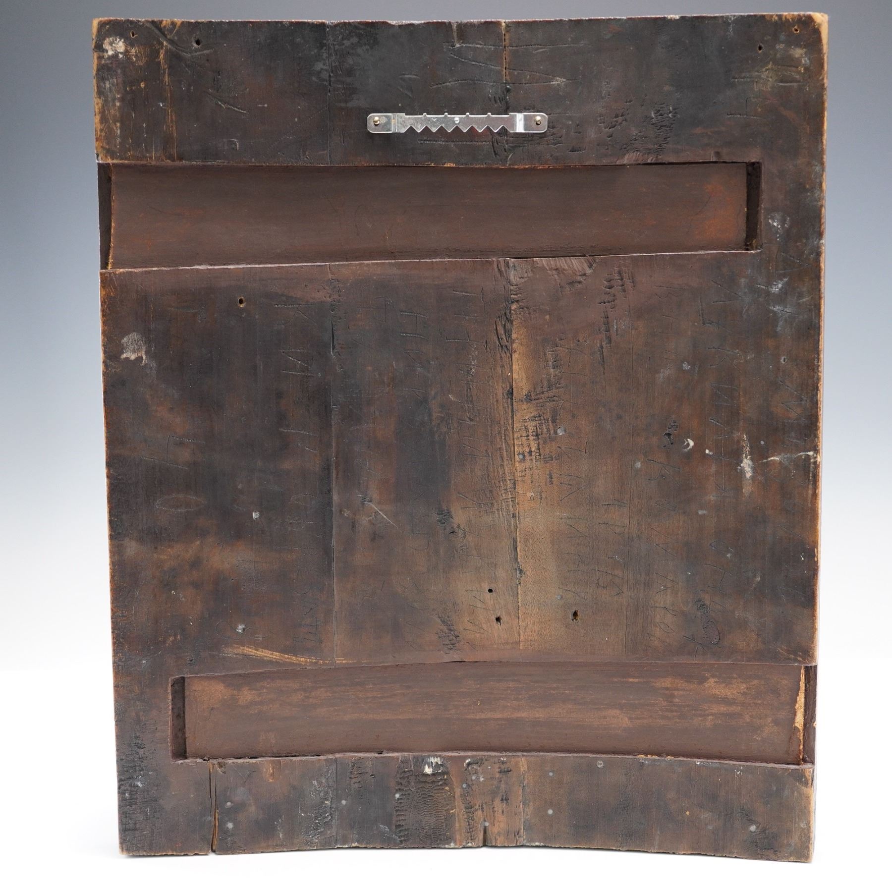 Condition: Age related wear. Surface wear, scuffs, and scattered paint loss consistent with age; areas of craquelure; minor flaking at edges.
