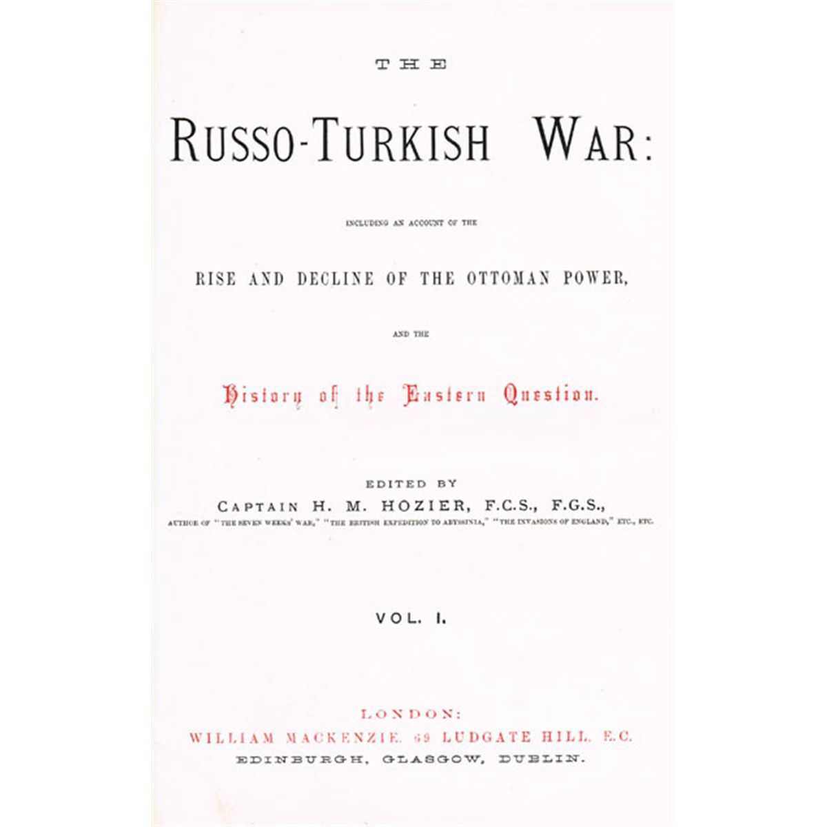 The History of the War against Russia Illustrated (Crimean War), by E. H. Nolan, 2 volumes, James S. Virtue, London, 1857. The Russo-Turkish War, by Capt. H.M. Hozier, W. MacKenzie, Edinburgh, 1878, Volume 1 & 2. The War Between Japan and Russia, by Murat Halstead, London, 1904. The German Official Account of the Russo-Japanese War, by Karl Von Donat, Rees, London 1909. The Russo-Turkish War, by Capt. H. M. Hozier, W. MacKenzie, Edinburgh, 1877, Volume 1 & 2. (10 books)