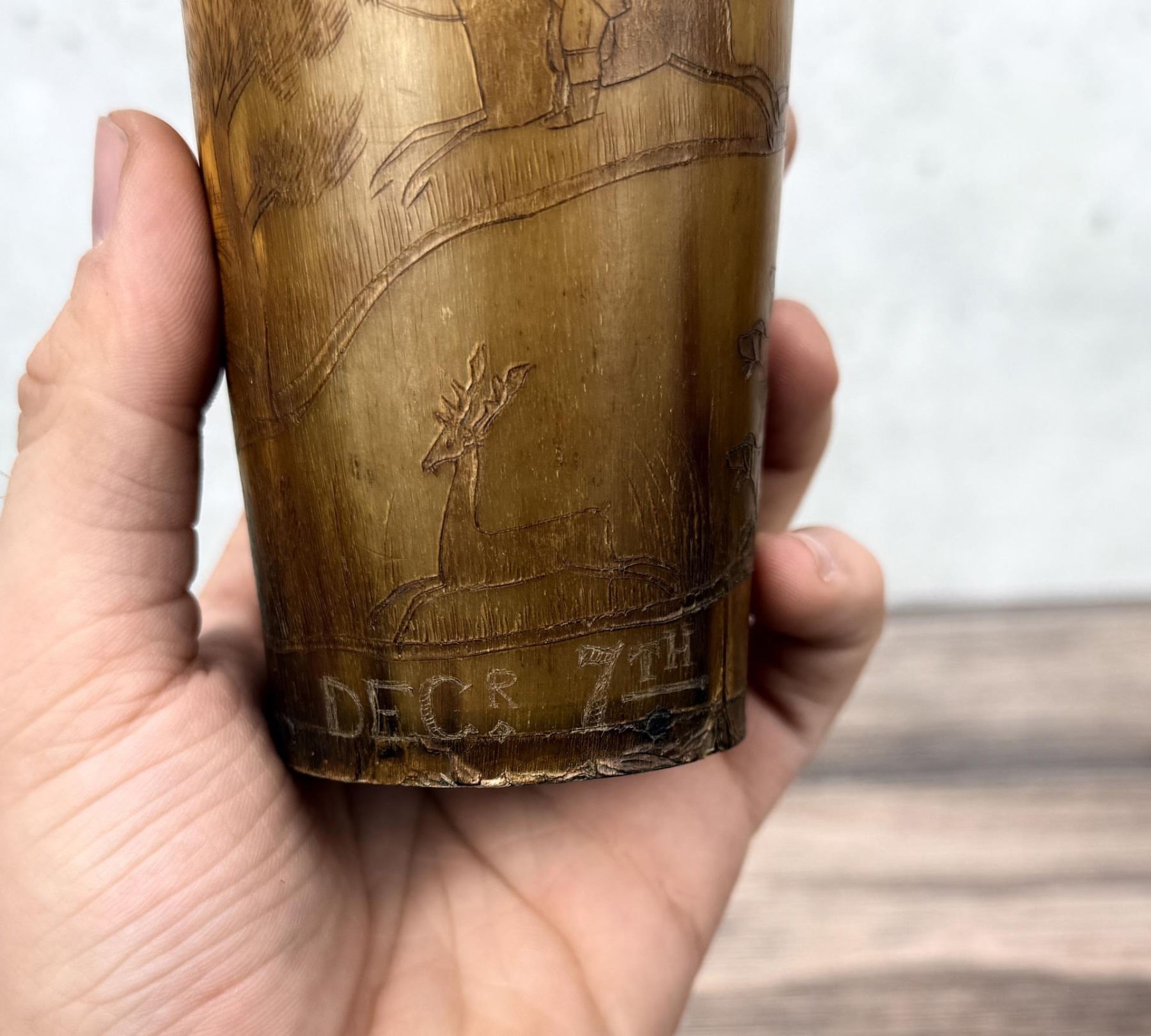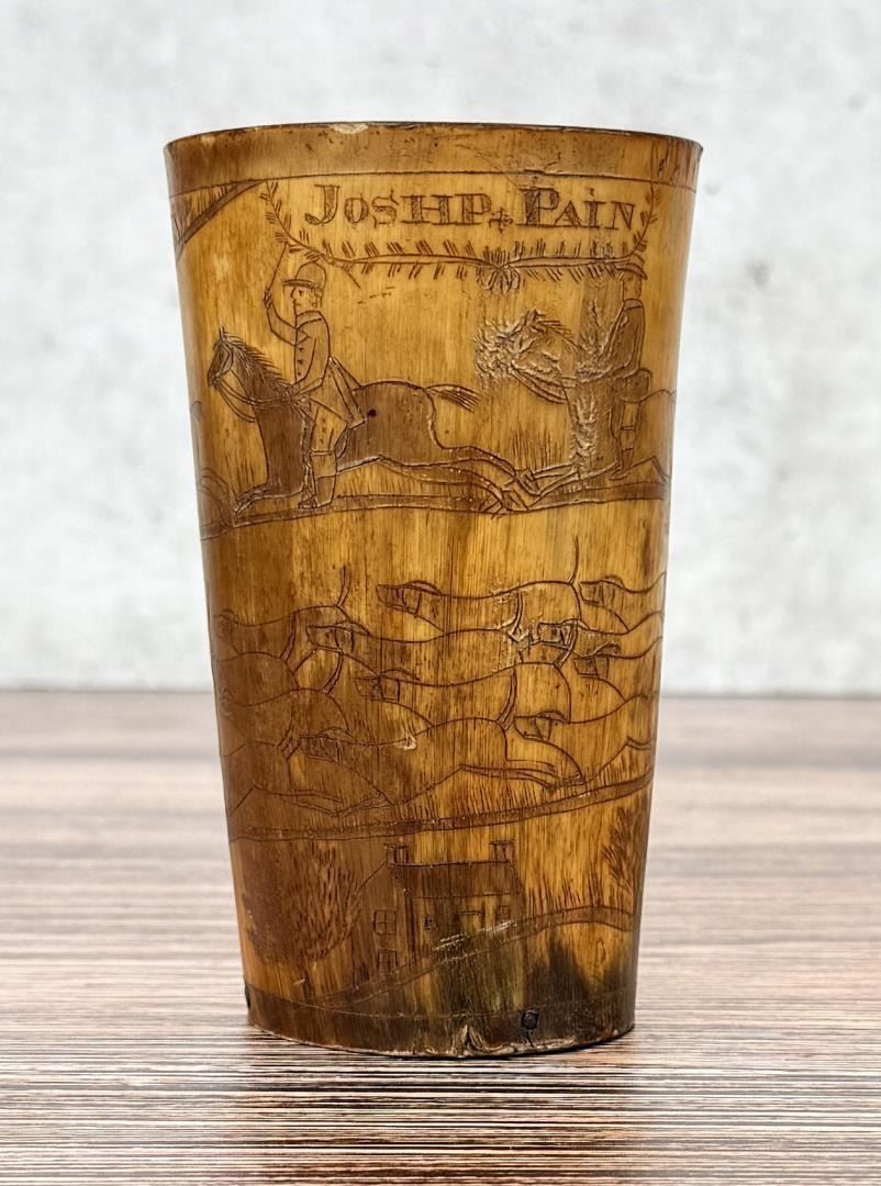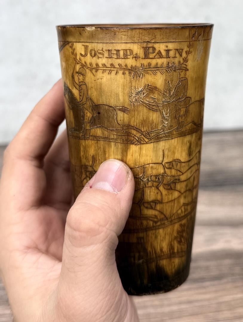 4 3/4" tall. Diameter is 2 3/4". Named to Joshp Pain.