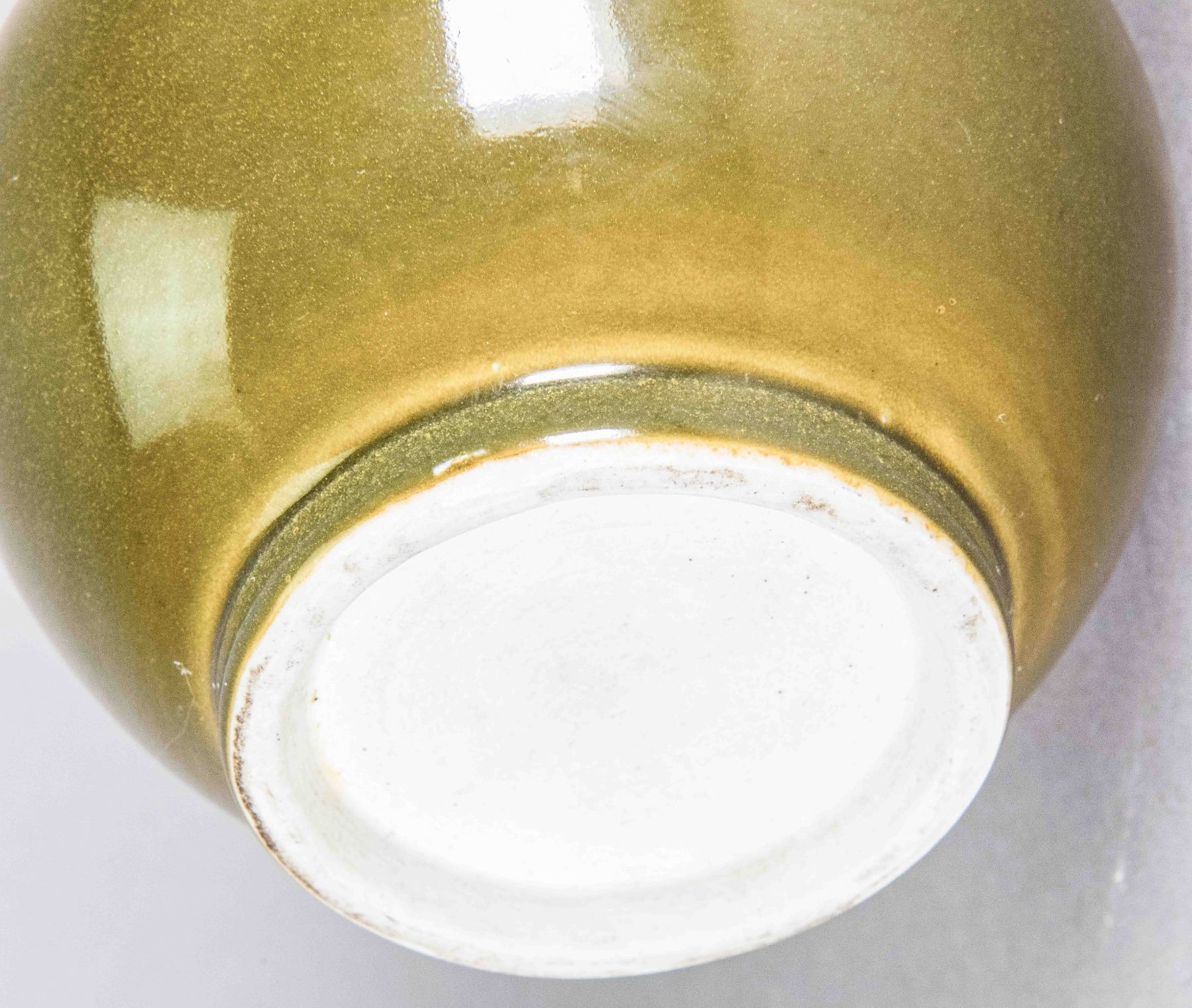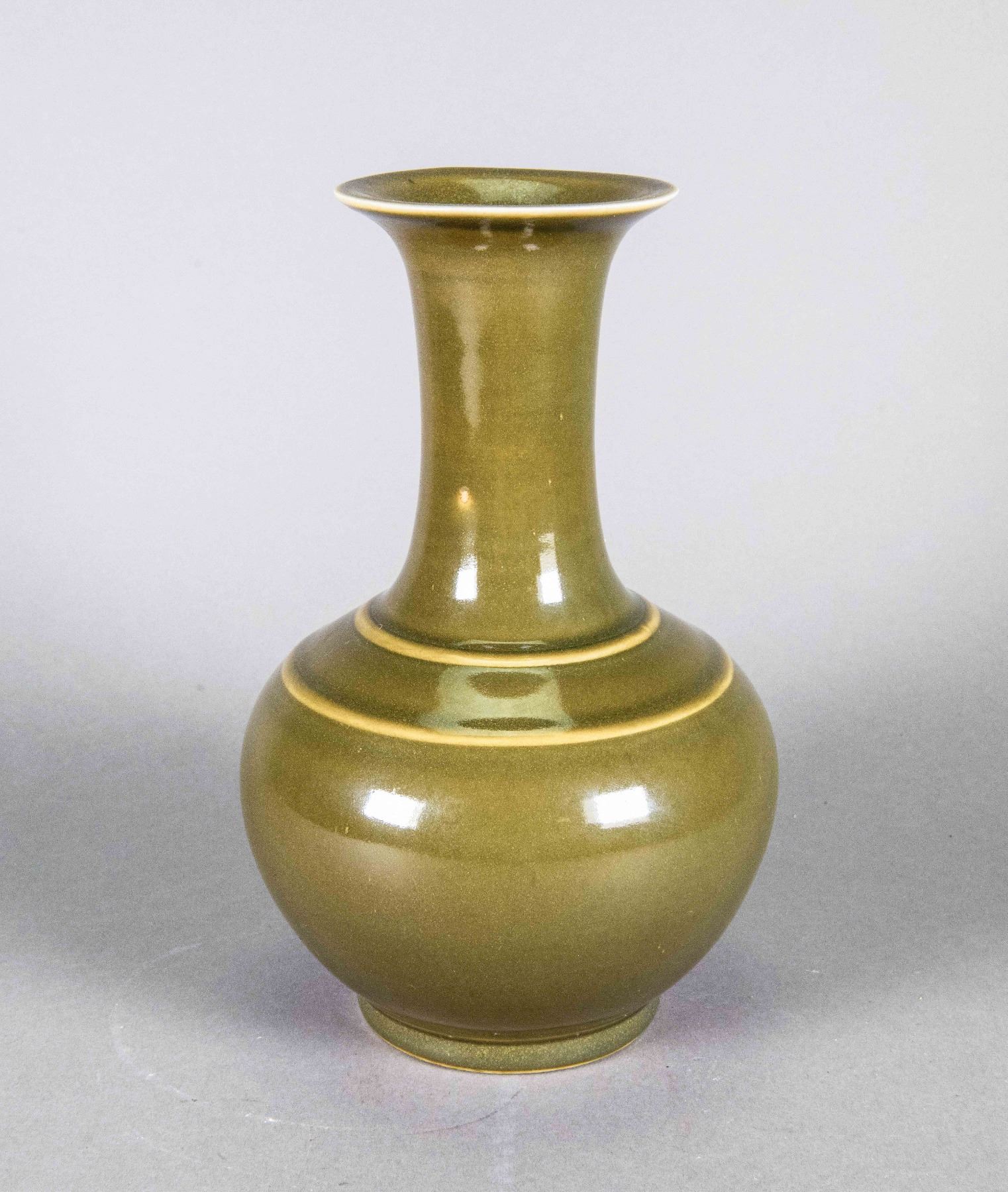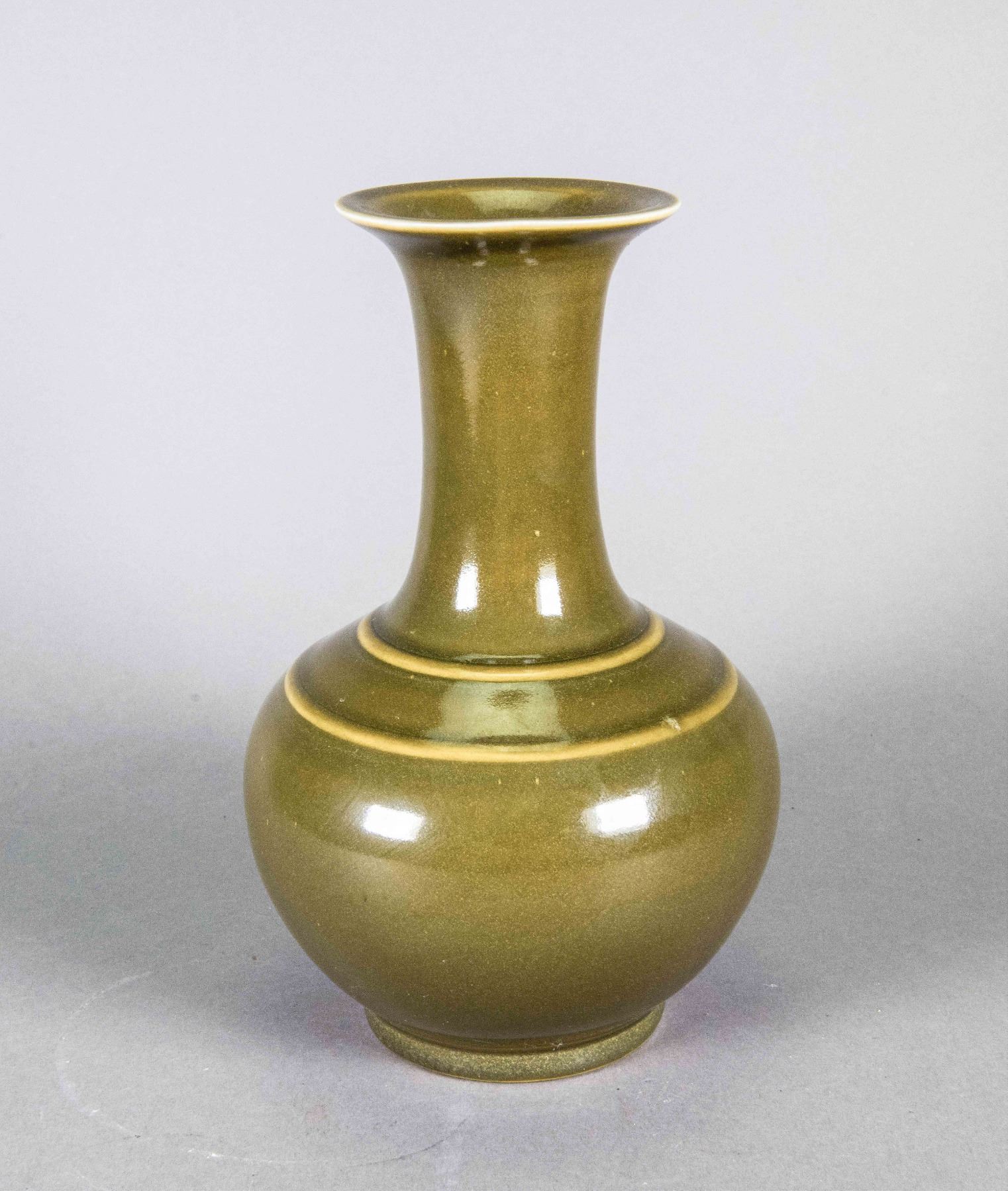 Chinese 19th century tea-dust-glazed porcelain vase; of globular body with long neck and everted rim; supported on short foot rim; H: 24 cm, D: 16 cm, 825 grams