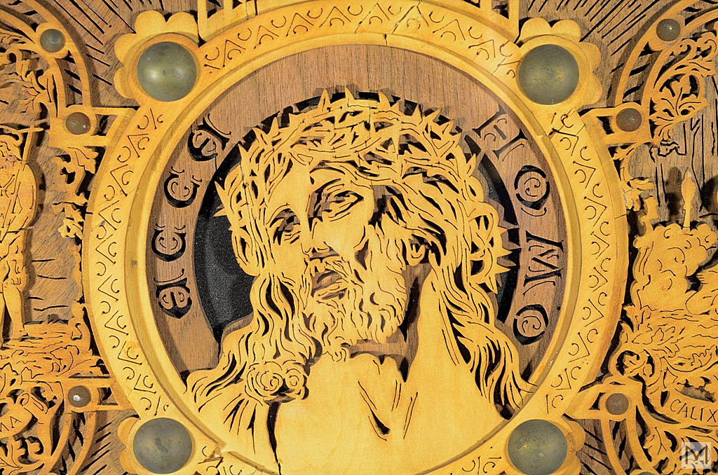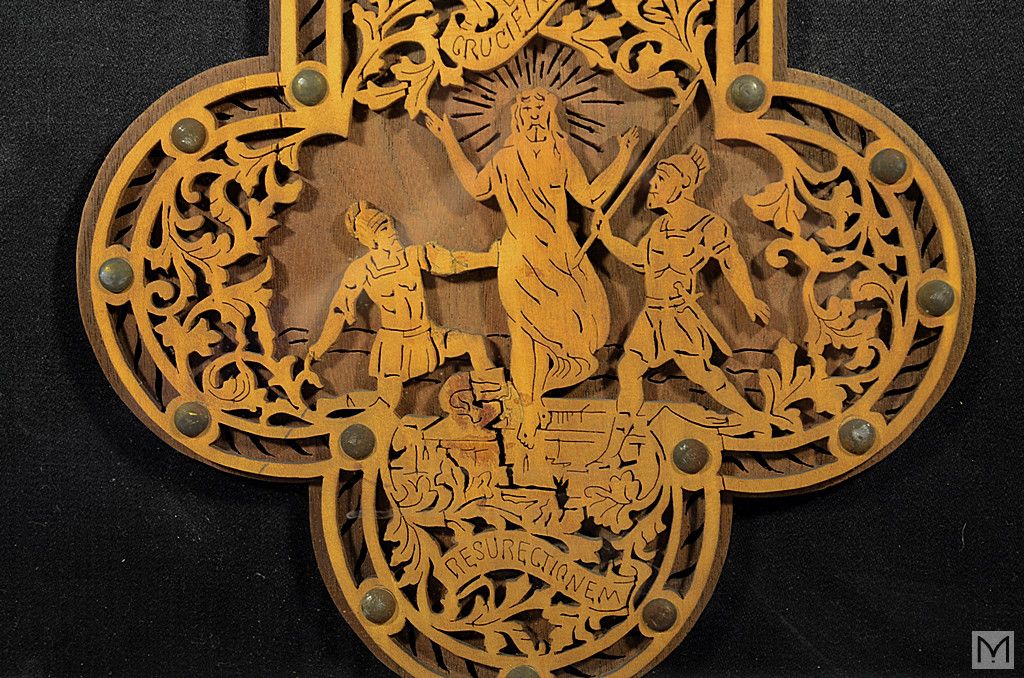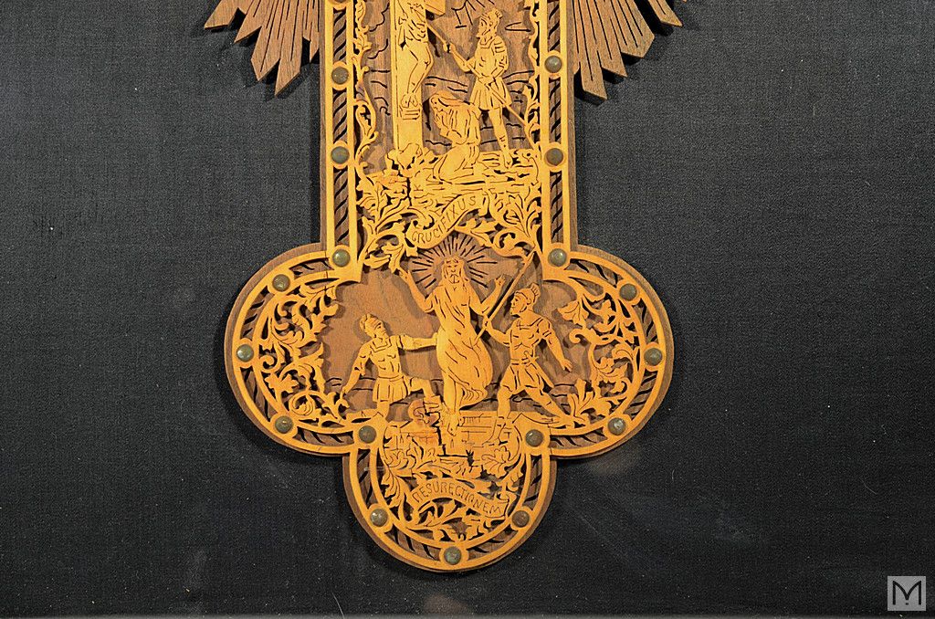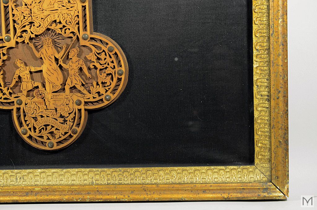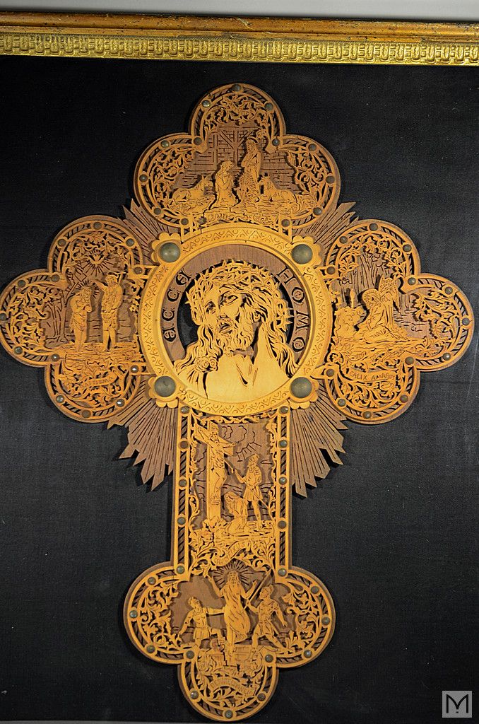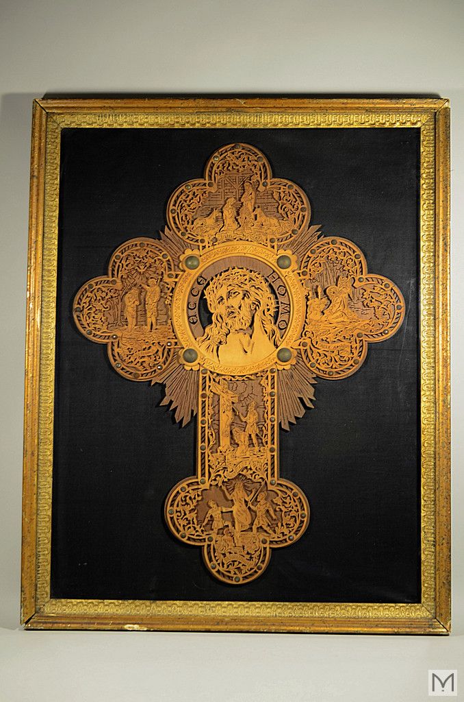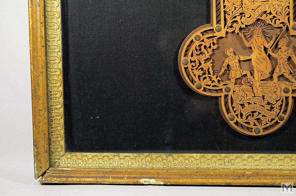 19th Century Wood Cut Work Framed Collage - Vignettes of Christ With Holy Cross