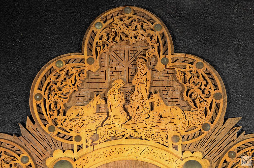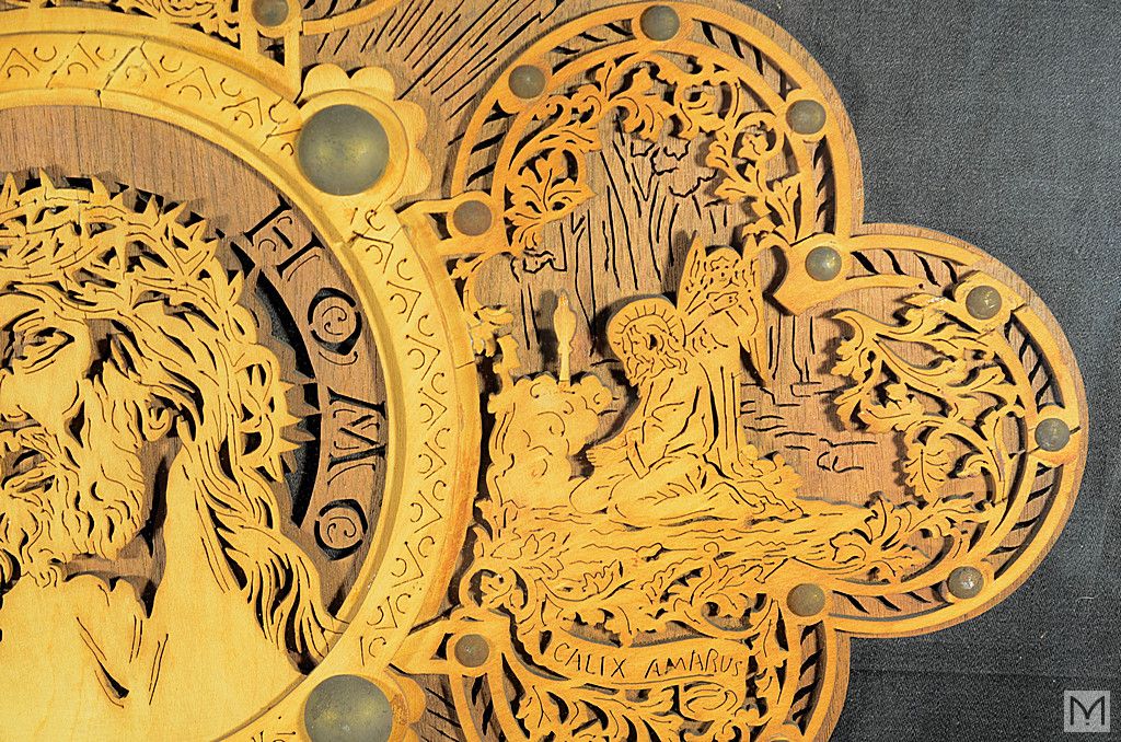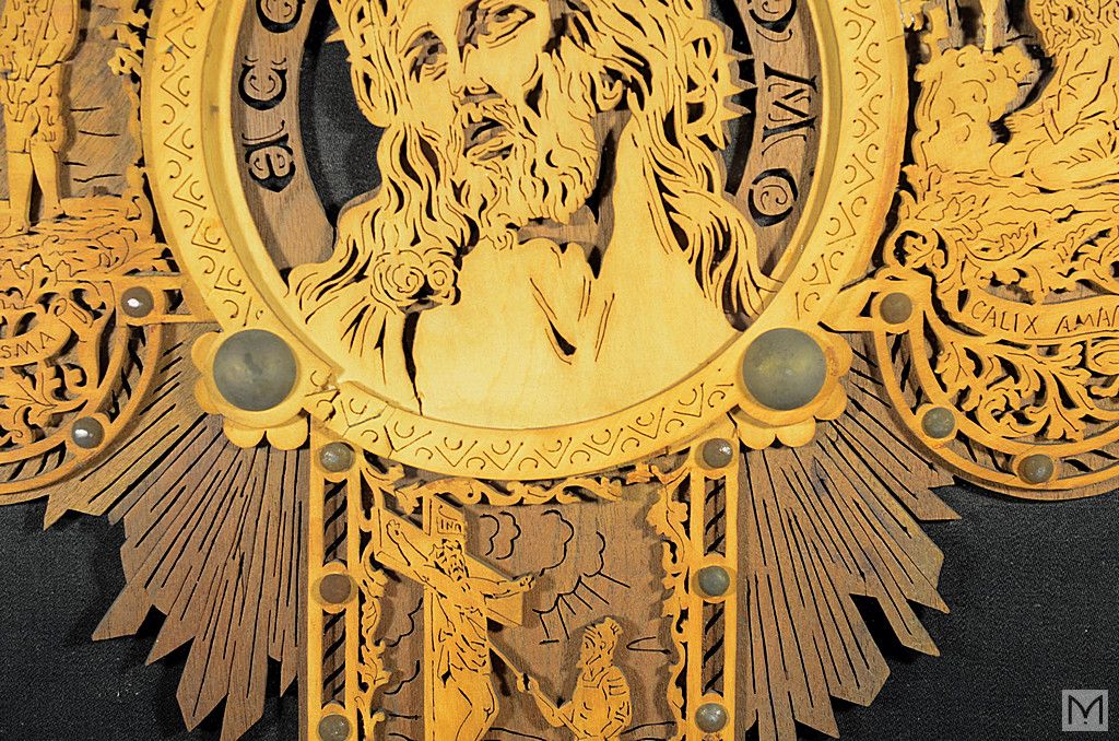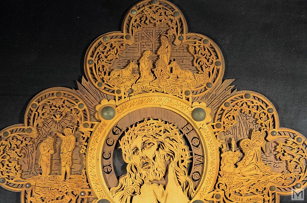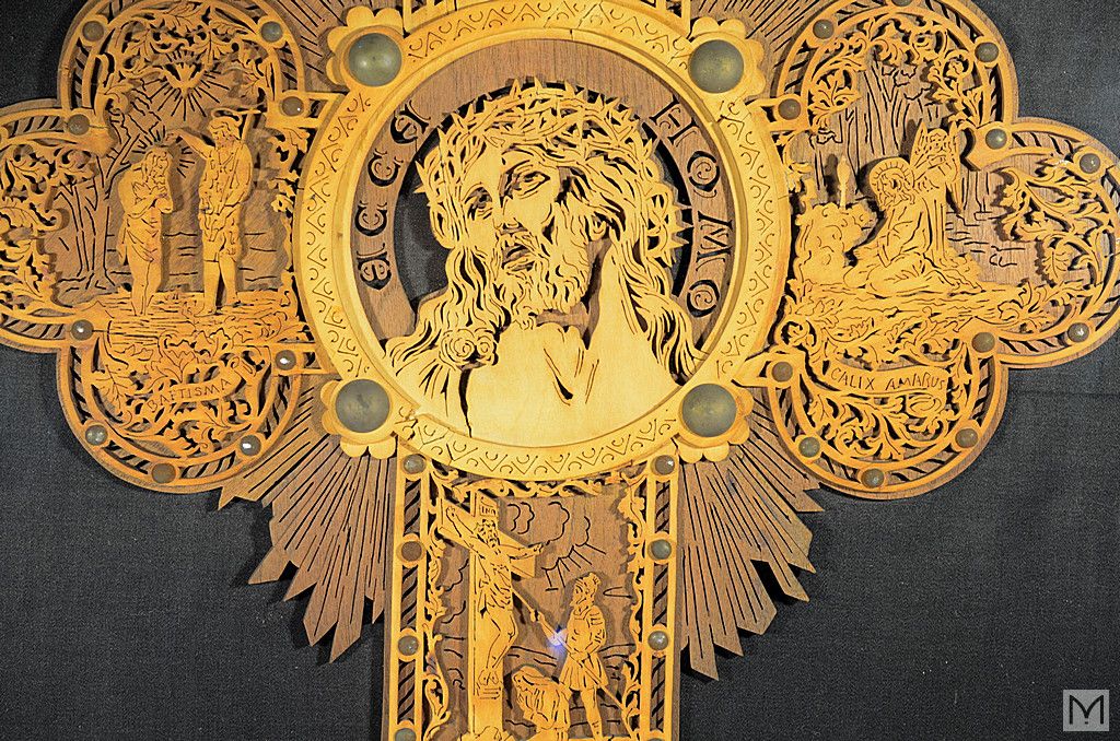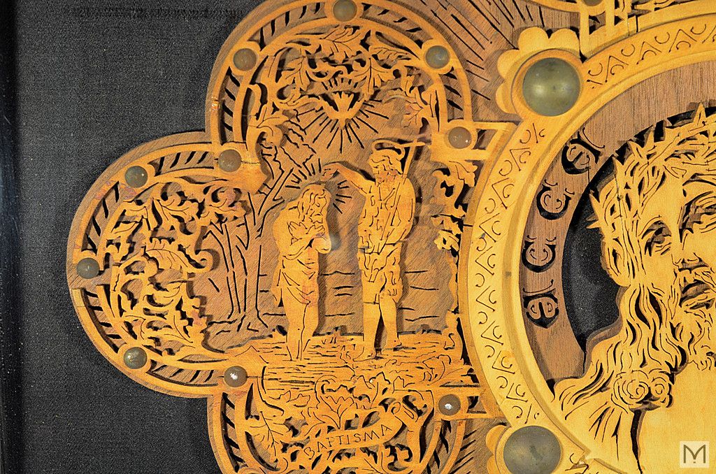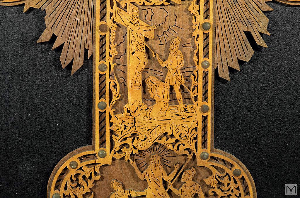 19th Century Wood Cut Work Framed Collage - Vignettes of Christ With Holy Cross