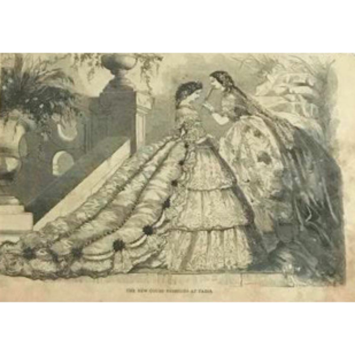 19th Century wood engravings featuring Paris Fashions, from a mid 19th Century, illustrated newspaper, "Paris Fashions ForApril" & "The New Court Fashions At Paris". Approx 8" X 10" each. In original packaging from The American Heritage Gallery in Atlanta Ga.