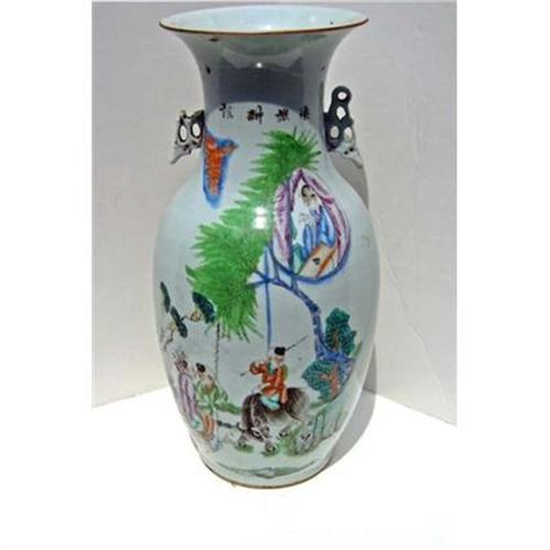 and value of the piece are not affected because of the break. This vase would be a wonderful lamp. The detailed and very skillful executed painting is very charming.