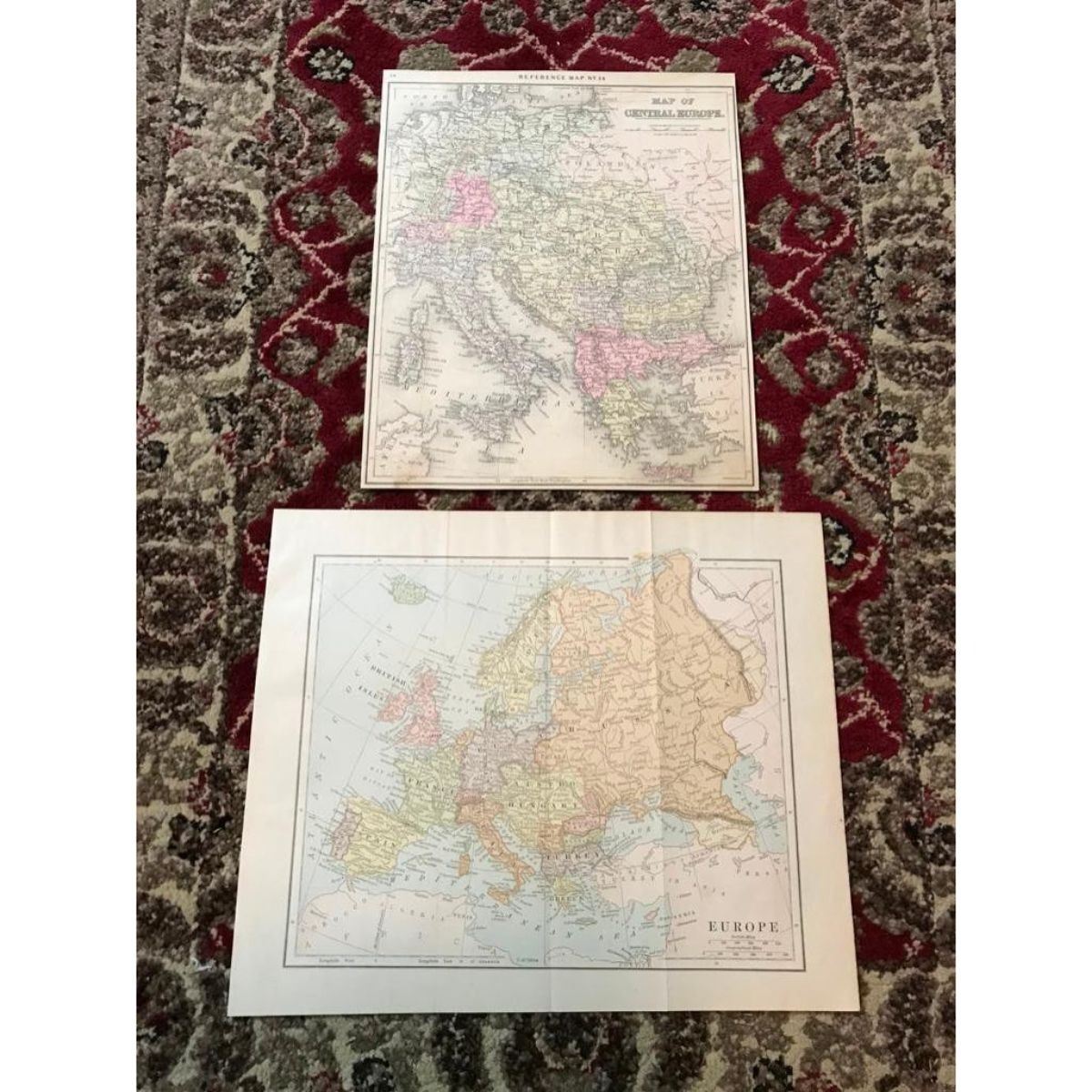 Pair of original maps of Europe. - a hand-colored, reference Map ( No.14 ) of Central Europe, from THE COMMON-SCHOOL GEOGRAPHY - 1873 - early 20thc fold-out Map of Europe measuring British miles. 9" X 1" & 10" X 12".