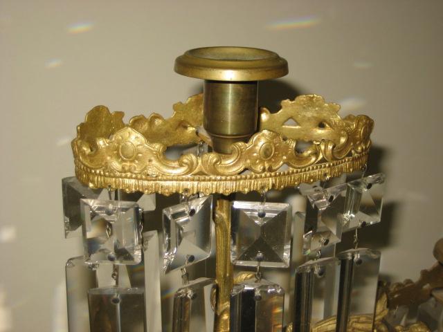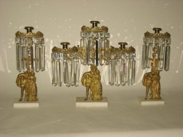 Bronze & crystal, mounted on marble bases.