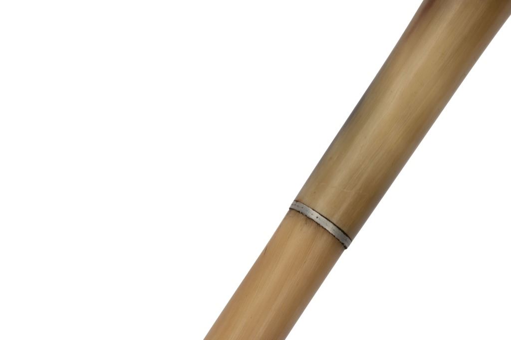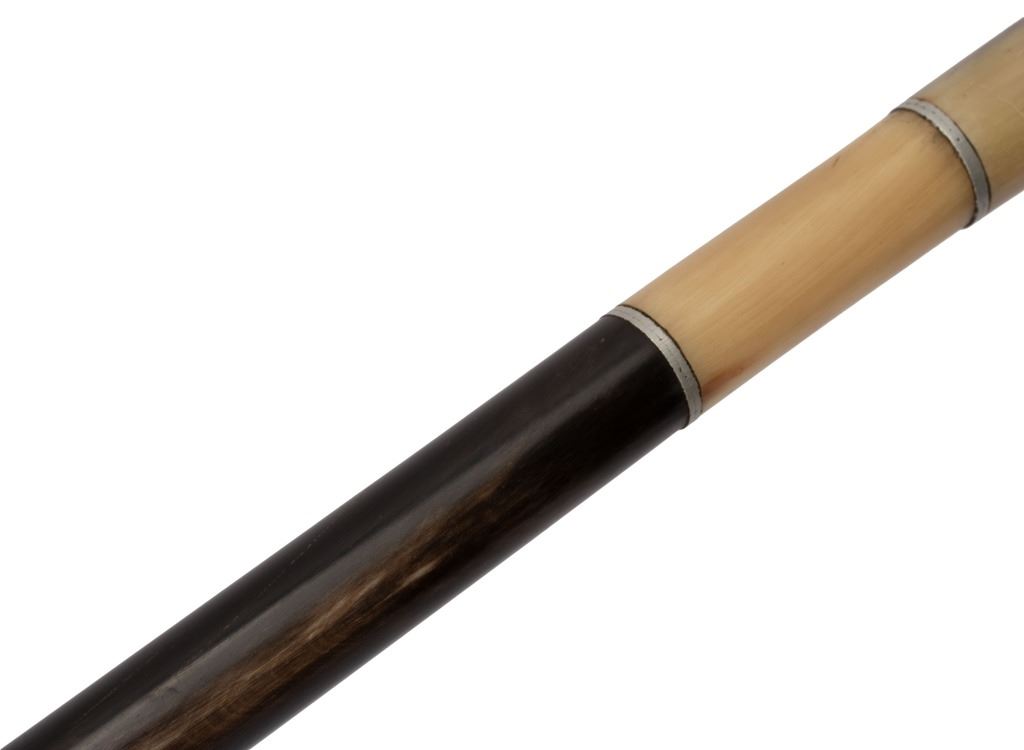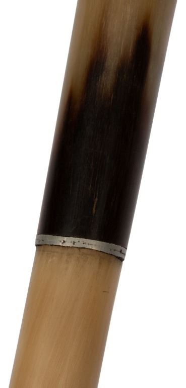 Item/Description: 19th century military baton, with inset silver bands. Carved bovine horn military swagger stick with silver washers.