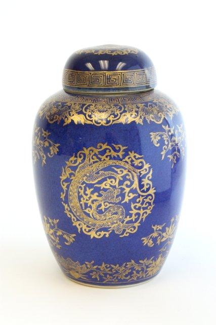 19th c. Chinese blue & gold ginger jar