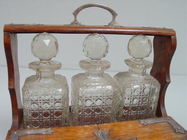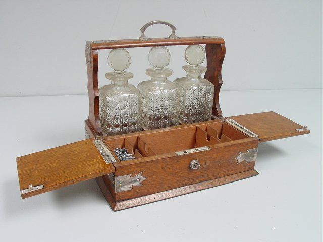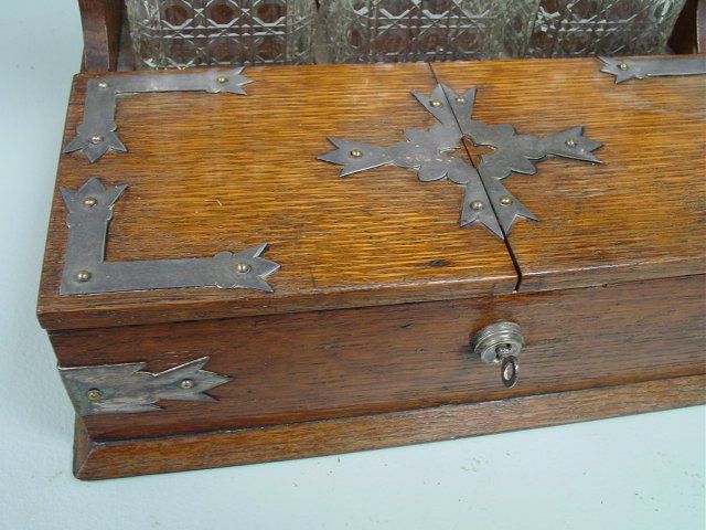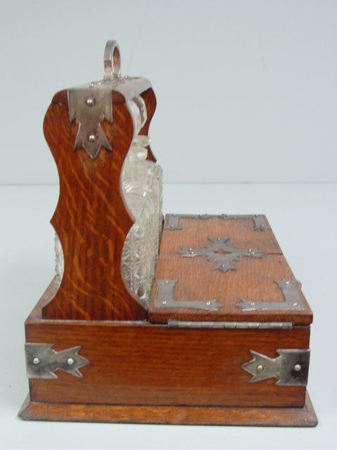Oak, glass & silverplate. Approx. 13" H x 13" W. From a Scarsdale, NY estate. Please read our terms of sale.
