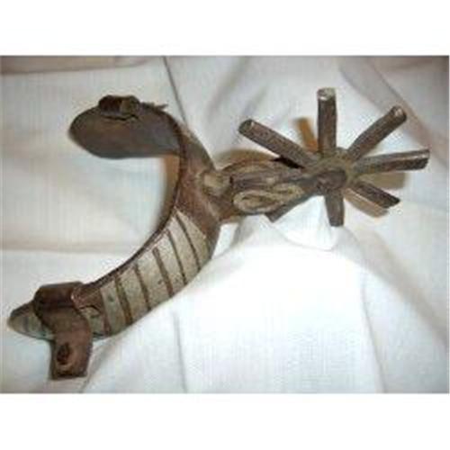 This 19th century fancy silver spur is from the South West. It is made of iron with silver pressed into the sides. The two sides are of a different design.