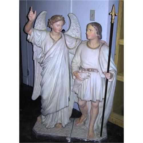 French turn of the century statuary representing Tobie and Raphael from a French church