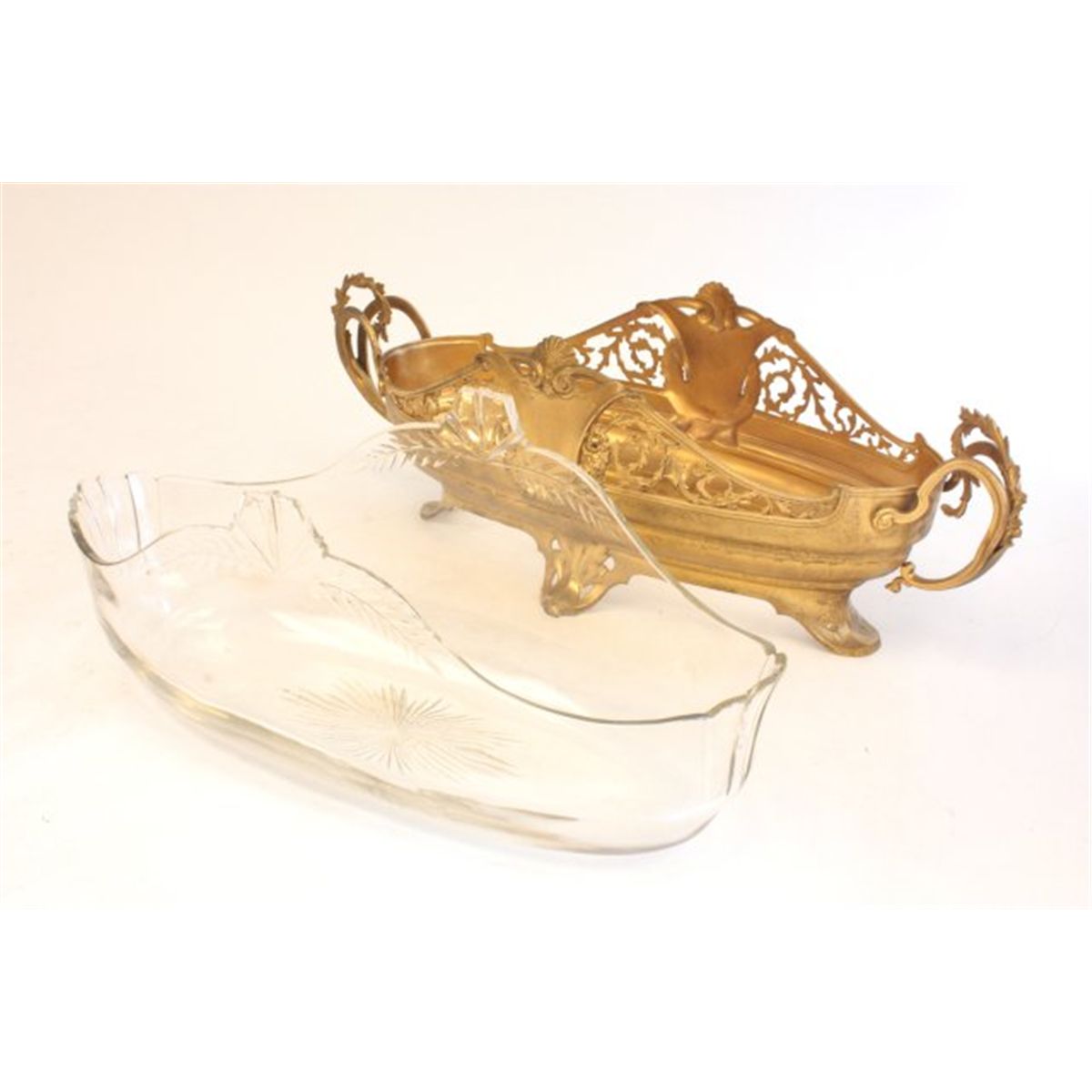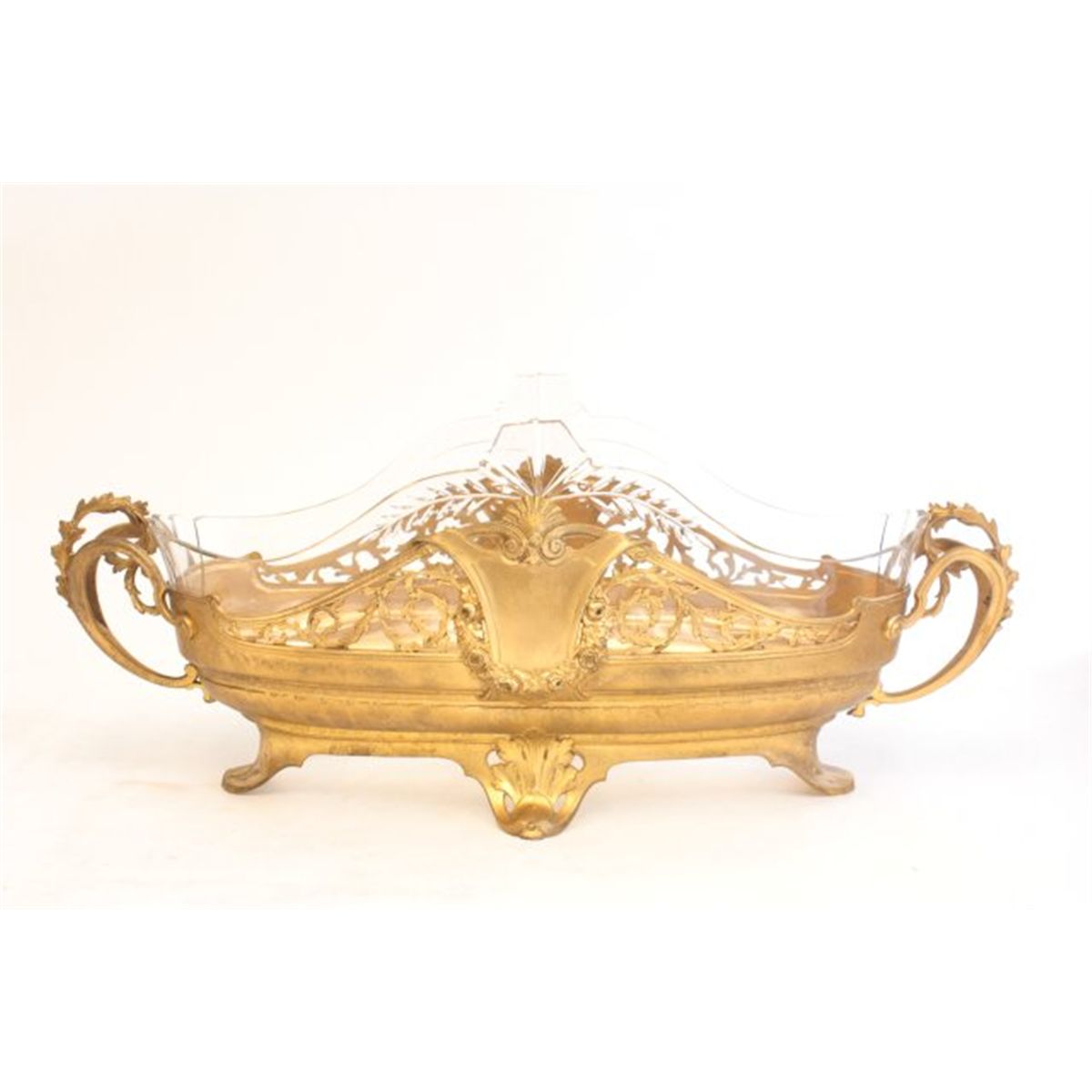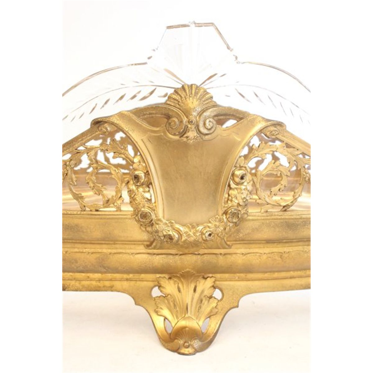 With crystal insert, etched crystal.  Approx.  10.25" H x 24" W x 8" D. Please read our terms of sale.