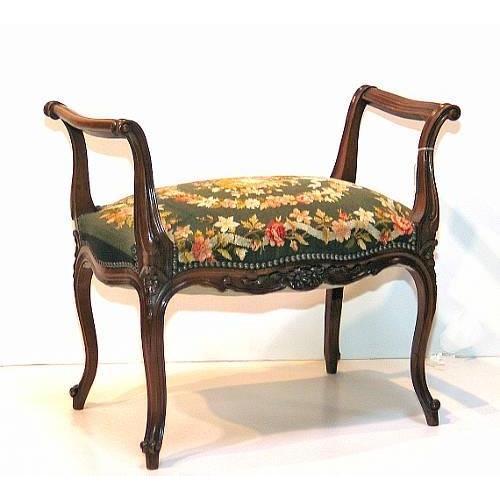 Louis XV style Walnut bench upholstered in antique needle point.Overall in Great condition. France, Last quarter of 19th century.height 25in; width 28in; depth 14in