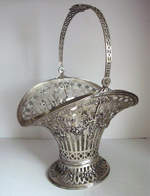 With original glass insert. Excellent condition. Approx .380g, 12ozt, 11” high w/handle. Please read our terms of sale.