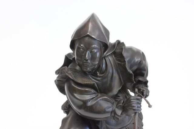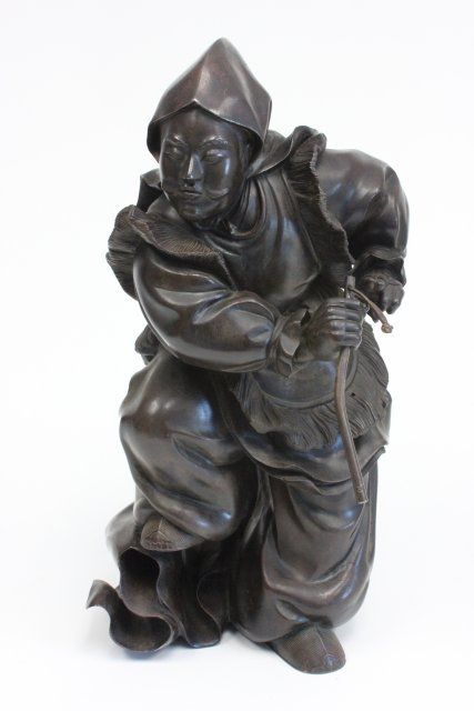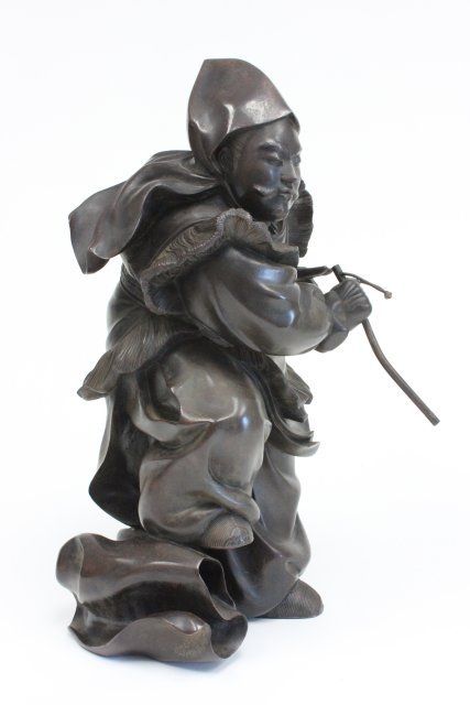Depicting a "Moustached Japanese Man Holding a Stick". Approx. 17.5" H.