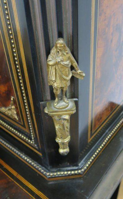 Burles Walnut & Bronze. Mounted with 45 Sevres plaques & bronze figures. Approx. 48" H x 57 1/2" H x21 1/2" D. Bottom mirror needs re-silvering. 1 plaque cracked.