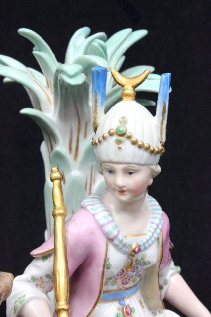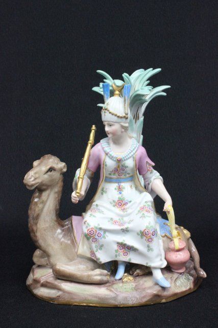 "Queen on Camel", incised mark G4,79,68, blue cross sword mark. Approx. 6.5" H x 5.5" across. The property of a NYC gentleman's 20 year collection. Possible professional restorations.