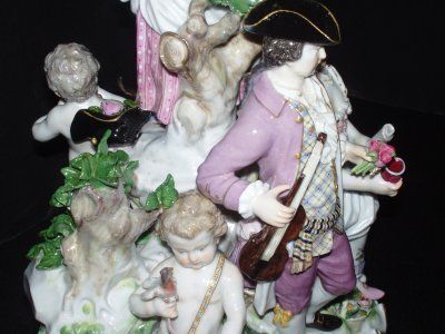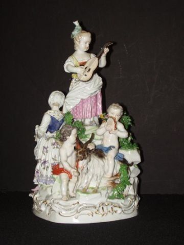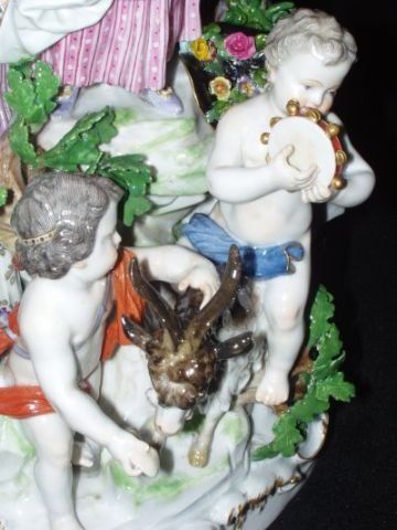 "Musicians, Putti & Ram", professionally repaired. Approx. 15" H x 7".