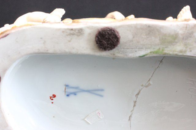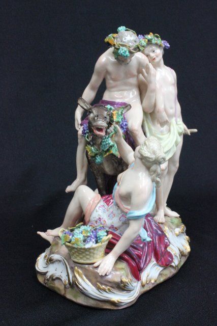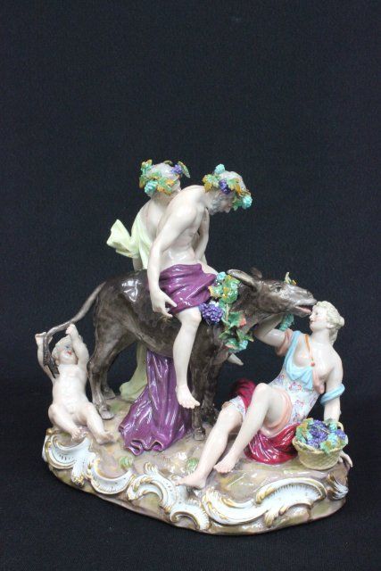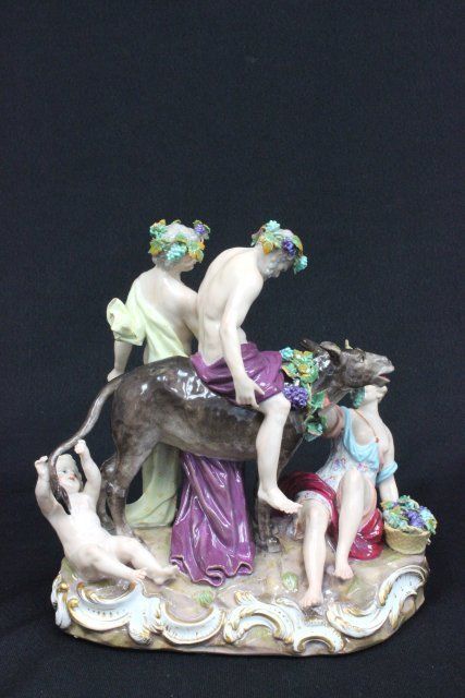 "Europa and the Bull", all in drunken state, incised mark 2724, blue cross sword mark. Approx. 8.75" H x 7.75" across. The property of a NYC gentleman's 20 year collection. Possible professional restorations.