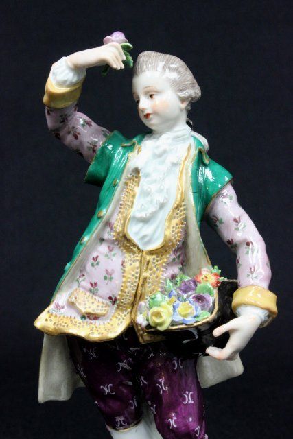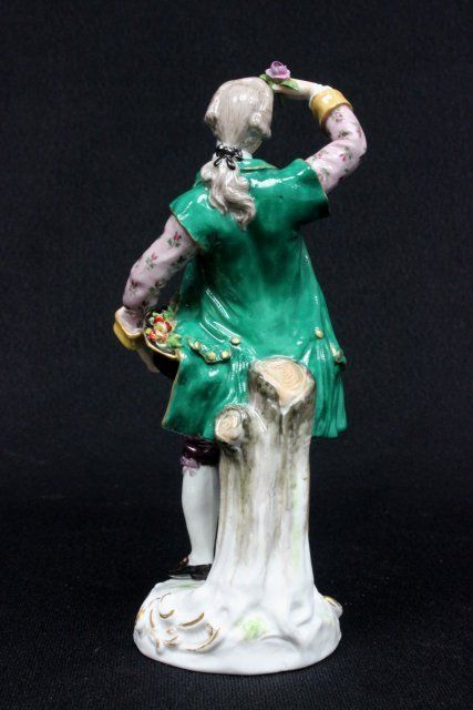 "Man with Hat of Flowers", blue cross sword mark, 1770-1910. Approx. 6.75" H. The property of a NYC gentleman's 20 year collection. Possible professional restorations.