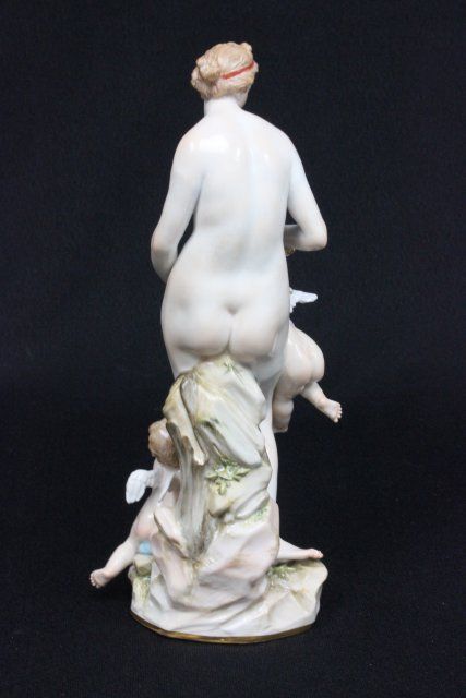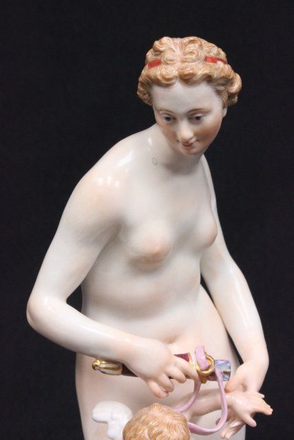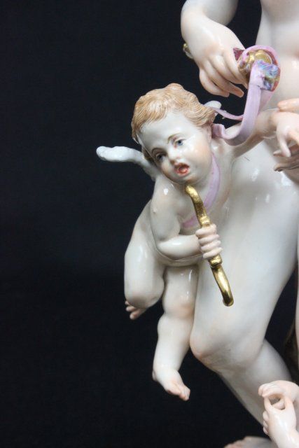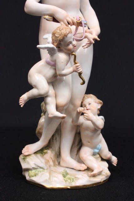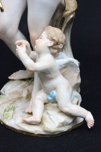 "Athena with 2 Cupids", incised mark 83,9, blue cross sword mark. Approx. 9" H. The property of a NYC gentleman's 20 year collection. Possible professional restorations.