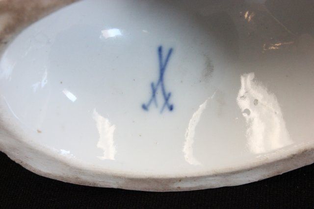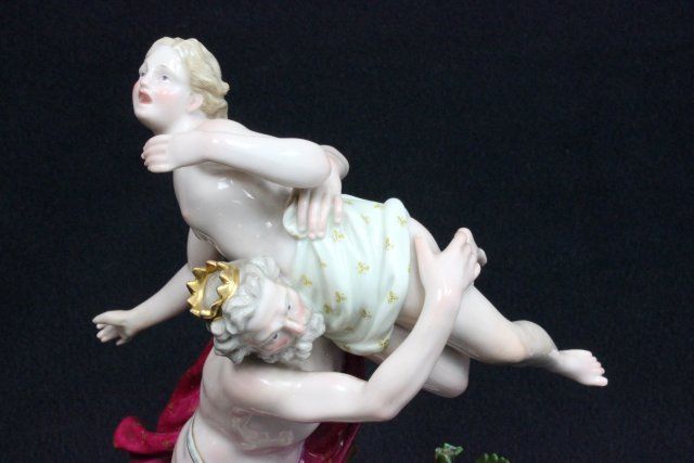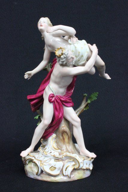 "Paris Carrying Helen to Troy", chip on corner, blue cross sword mark. Approx. 10.5" H. The property of a NYC gentleman's 20 year collection. Possible professional restorations.