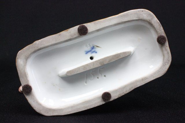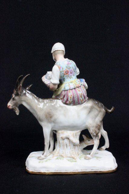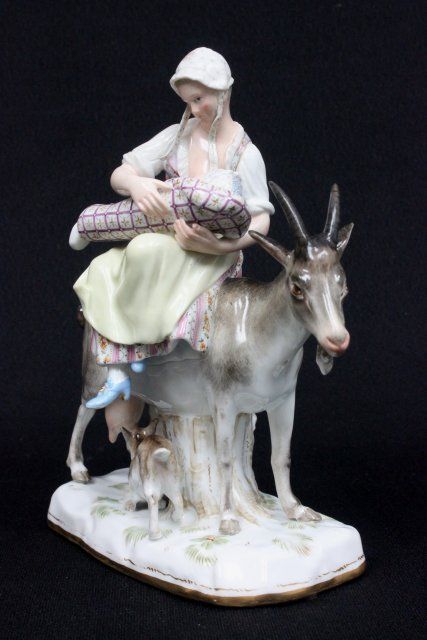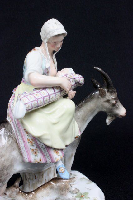 "Mother & Child Riding a Ram with Suckling Baby", incised mark 83, blue cross sword mark. Approx. 7.5" H x 6.25" across. The property of a NYC gentleman's 20 year collection. Possible professional restorations.