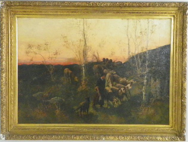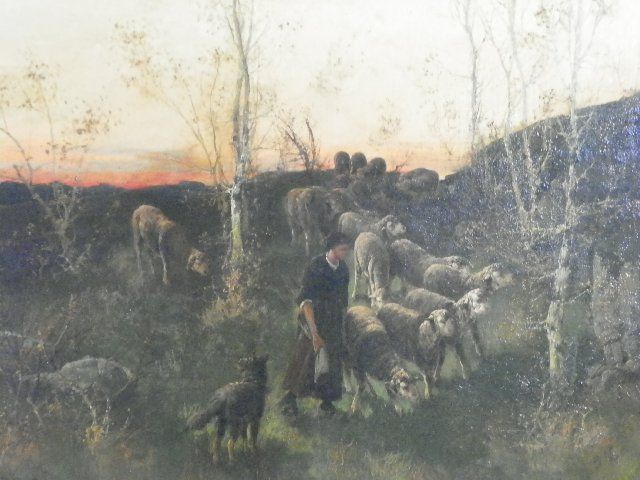Depicting "Women with Sheep". Framed. Approx. 33" x 43" Please read our terms of sale.