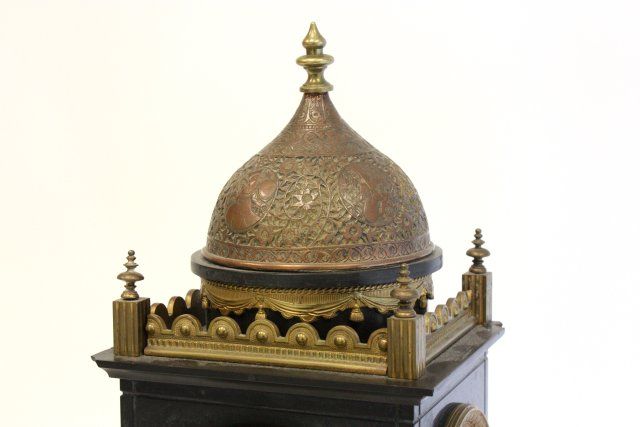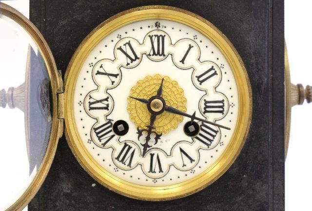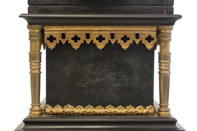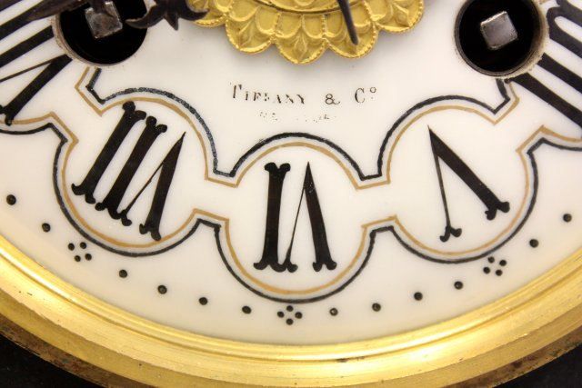 Works stamped Tiffany & Co., NY, 1 finial missing on top of clock. Approx. 21" H x 7" x 6". Please read our terms of sale.