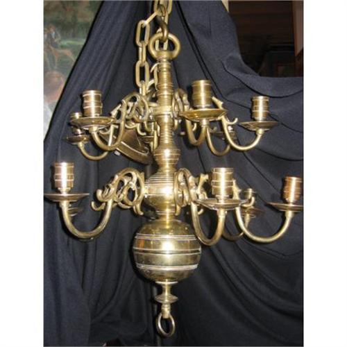 <tr><td>Title:19th c Two-Tier Dutch Brass Chandelier</td></tr>