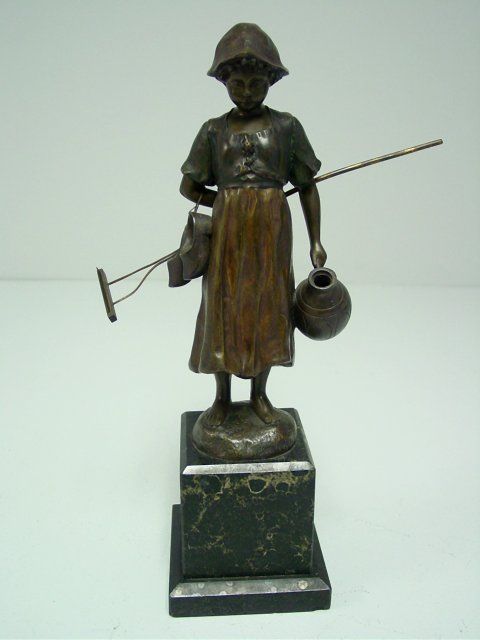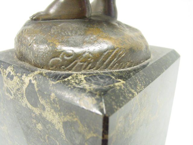 On marble plynth. Approx. 9 1/8" H without base, 12.5" H with base. Please read our terms of sale.