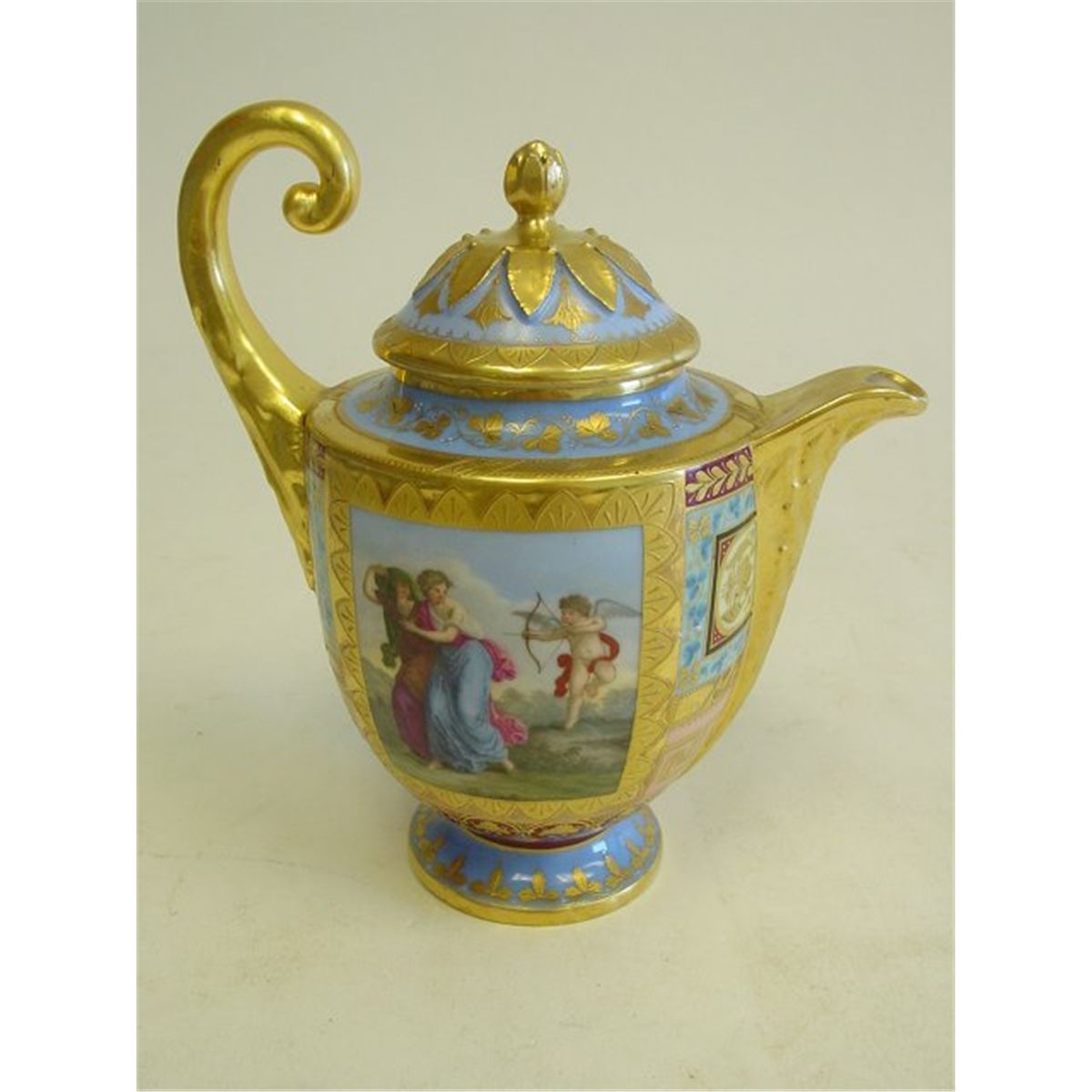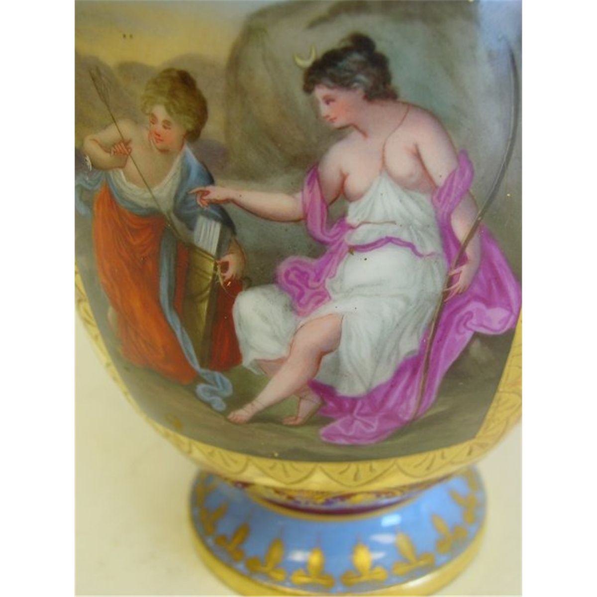 With blue behive mark, amorund grazien & Diana, painted scenes front & en verso. Approx. 7.5" H. Please read our terms of sale.