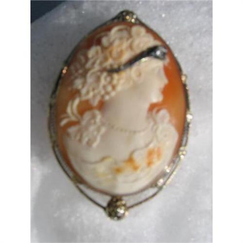 A unique feature is the carving of the cameo and the inset headband with sm dia. The gold side boarder around the shell is 1/4" wide.</em></td>
