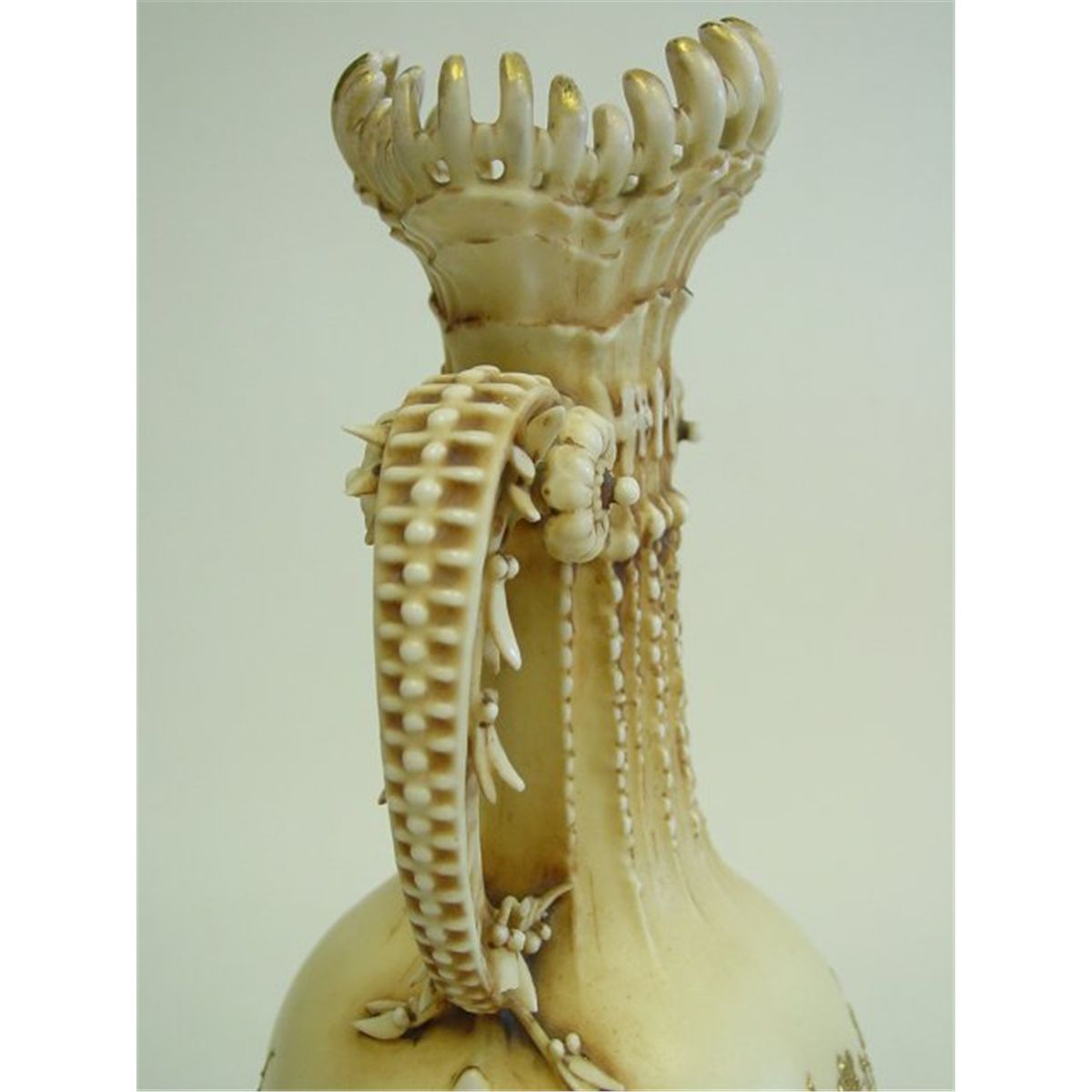 Sea Bubbles RStk-1893, rare pair of large Stellmacher vases with pierced top & handles, very nice matte ivory & brown glaze, heavily raised gilding, each with 3 butterflies, molded sea bubbles the bottom & the top is very sea shell