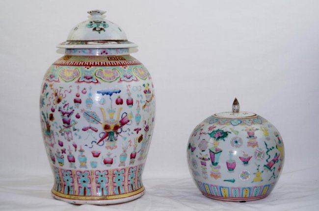 17" x 10" temple jar w cover and 8" x 8.5" melon jar