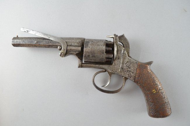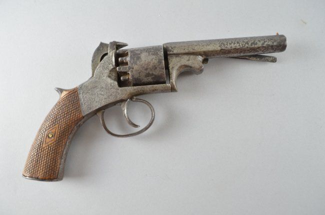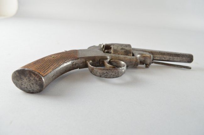 19th century 5-shot front loading percussion pistol, the barrel engraved 'Imported Revolving Pistol'