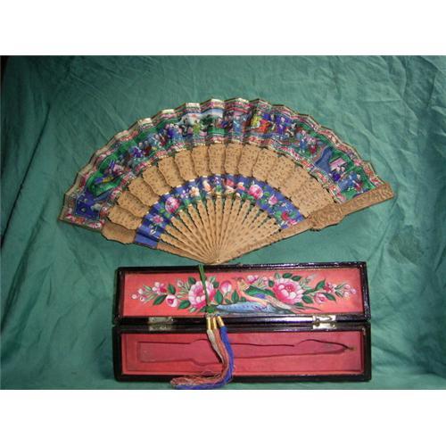 The sticks are very nicely carved, but one of the front sticks has been broken and glued after, otherwise this fan would have been almost in mint condition.