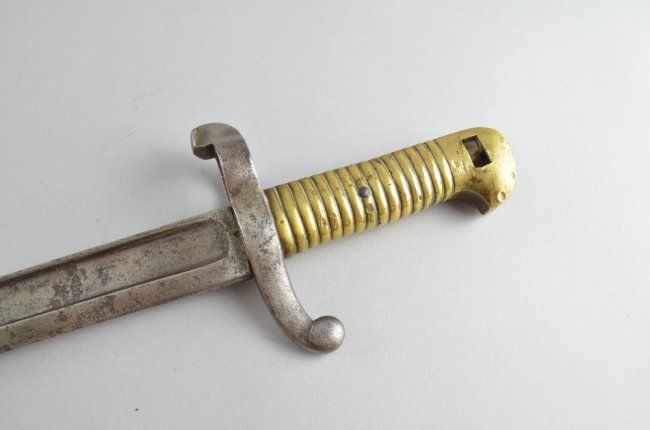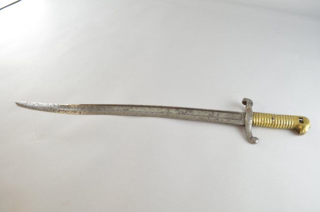 19th century French chassepot bayonet, edge of blade engraved and dated 1860, 27.5" long,
