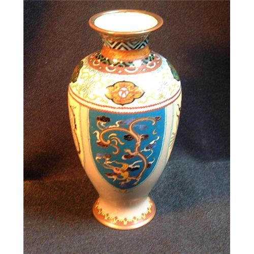 Antique, large Japanese cloisonne vase dating to Meiji period, 19th. century. The sides are decorated with 4 panels with intricate design. Size: 19x10 cm. (7.5" X 4"). Estimated retail value: $1500.