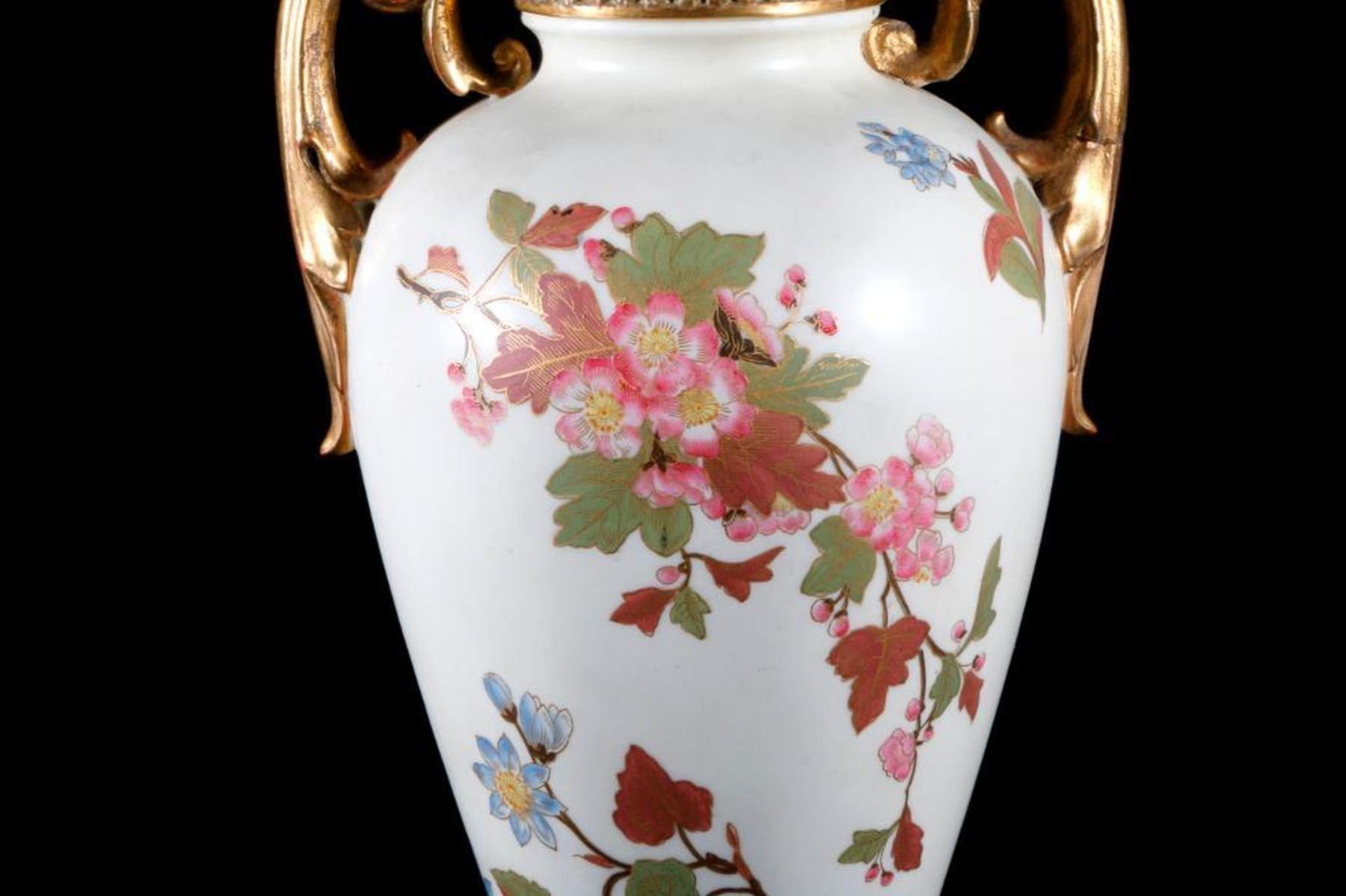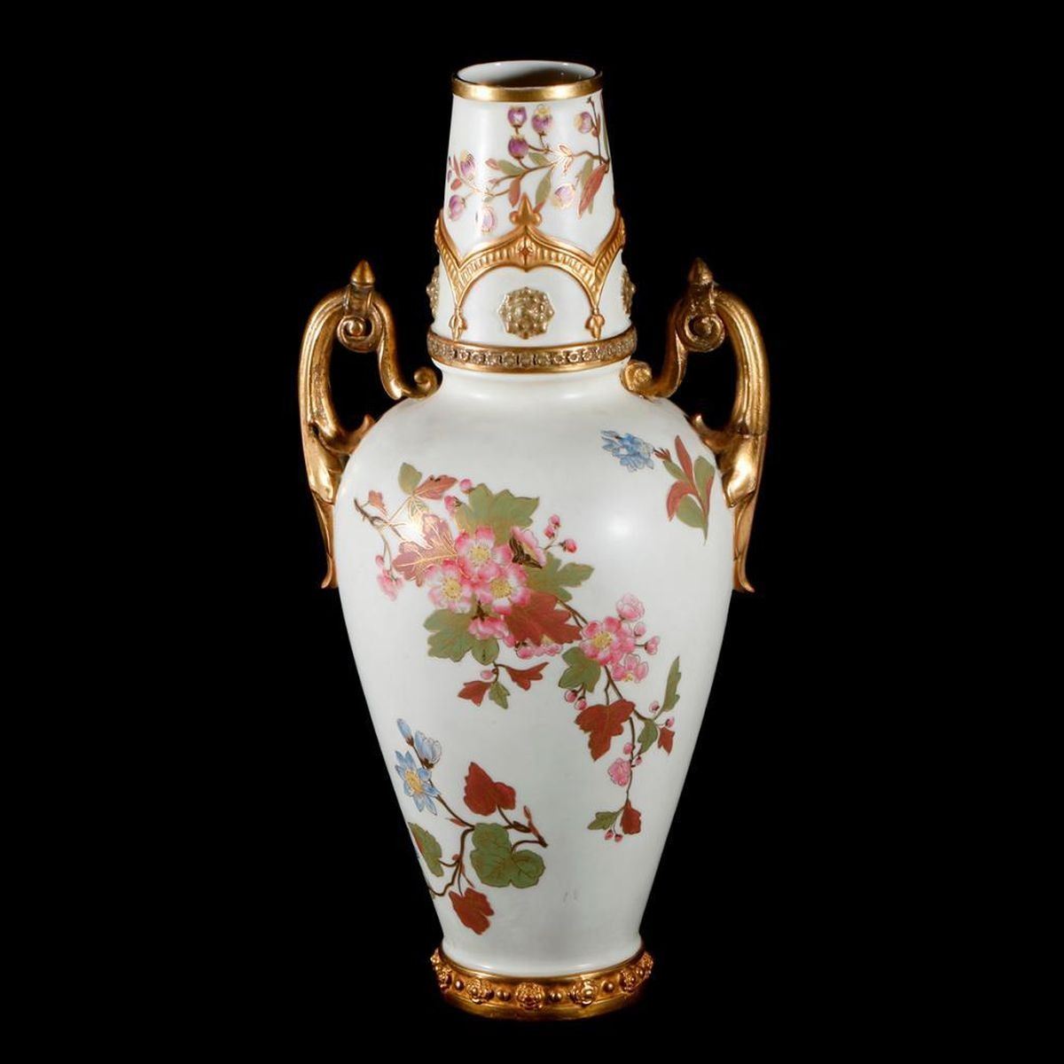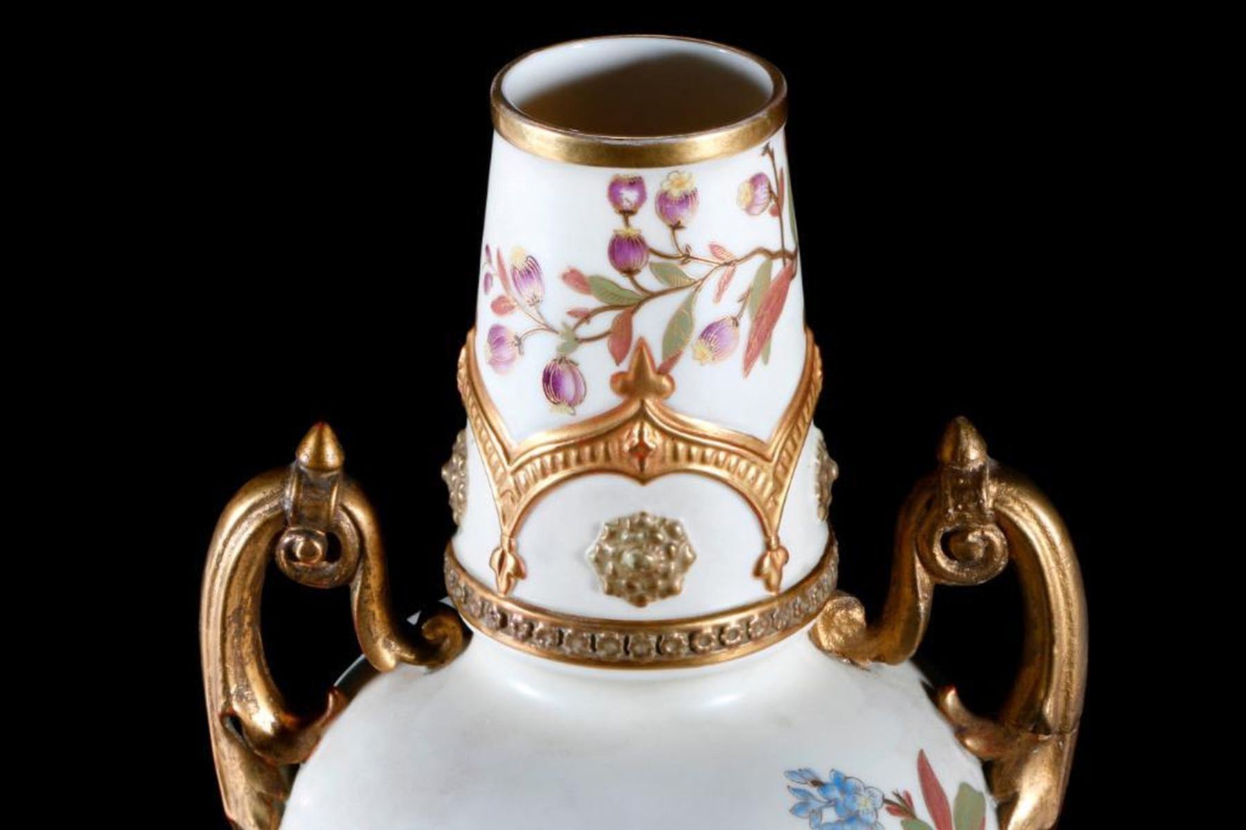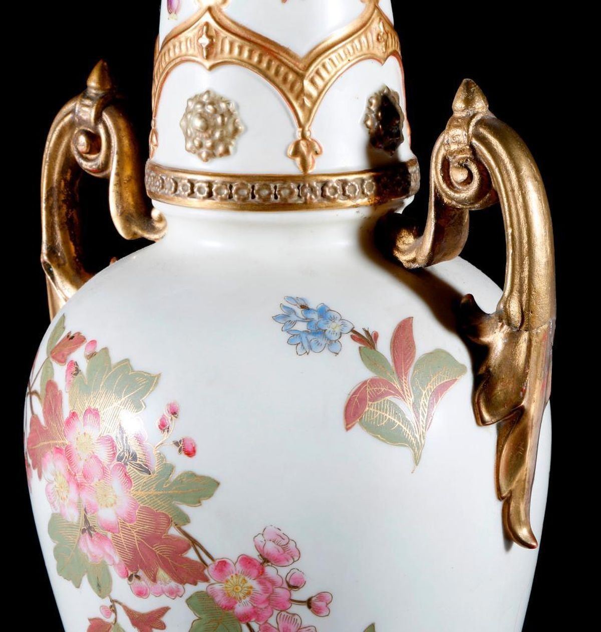 A painted and gilt Worcester porcelain vase with an 1851 date mark measuring 13 inches high x 6 x 5.