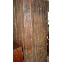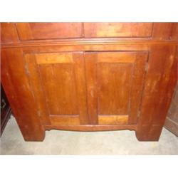 19th century cherry corner cupboard decorated with line inlay, two blind doors on top over two doors on bottom. Early rose head nail construction. Doors are pegged on top & bottom. Reverse consists of two massive boards measuring 23 1/4" wide each. Cupboard measures 84 1/2" tall, 45" wide, and 28 1/2" from front to corner.