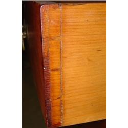 19th century country pine two over three chest of drawers. Measures 37" tall, 40 1/2" wide, and 19" deep. Drawers are dovetailed. Has one crack to foot on left side.